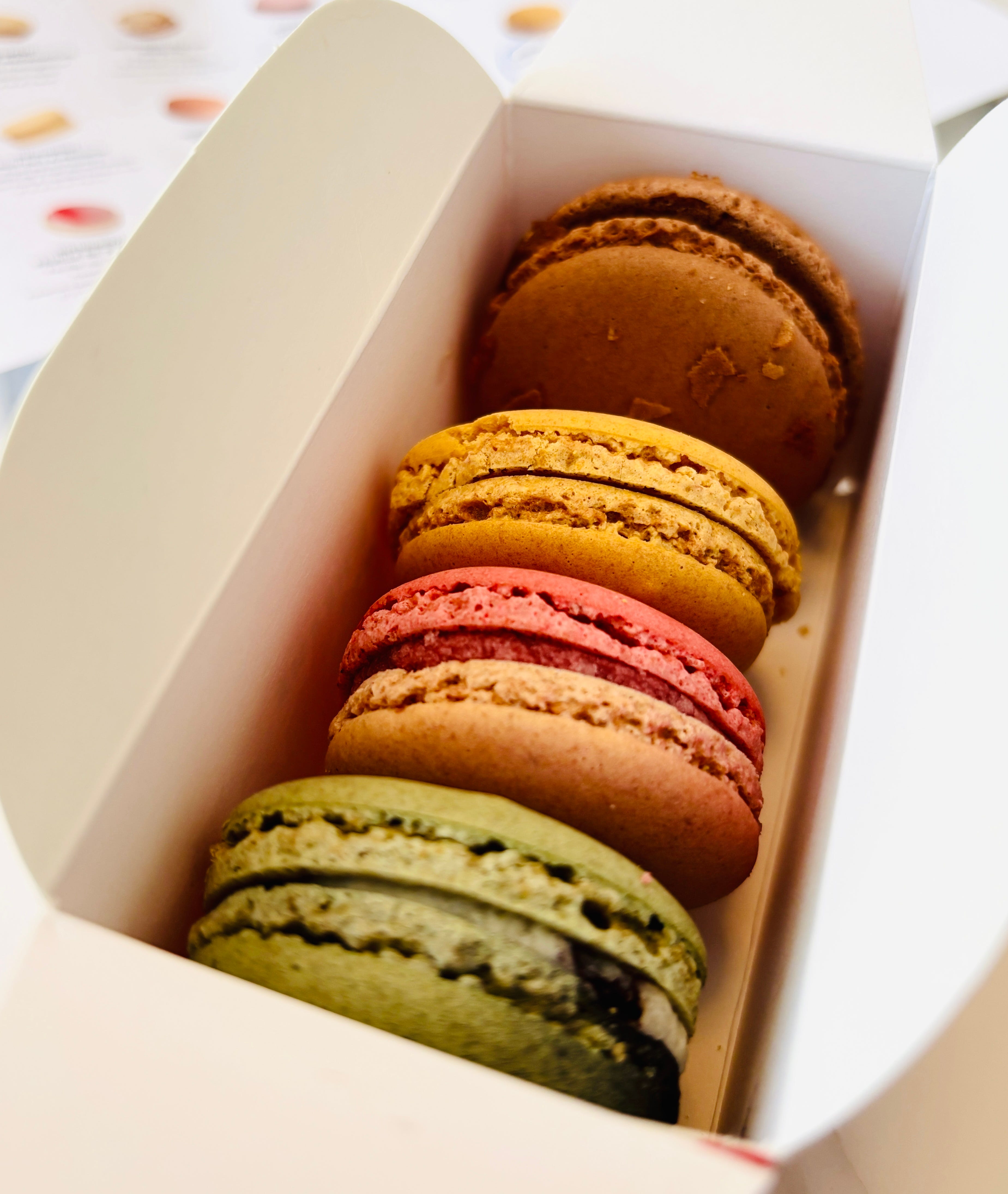When Dorie came by, she (of course) arrived with cakes from Pierre Hermé and a box of macarons, including one flavored with tomato leaves and another with tonka beans.
