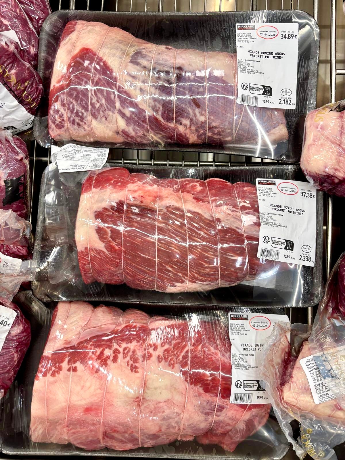 In the last few years, there’s been a lot more Angus beef featured on menus in France. And there was quite a bit of it for sale at Costco. I didn’t have my glasses on and when I asked Romain where it was from, he said “LU,” which I thought maybe was Lithuania. But when I dug my glasses out of my bag, I saw the meat was from the UK. Thankfully, Brexit didn’t stop the flow of good beef to France.