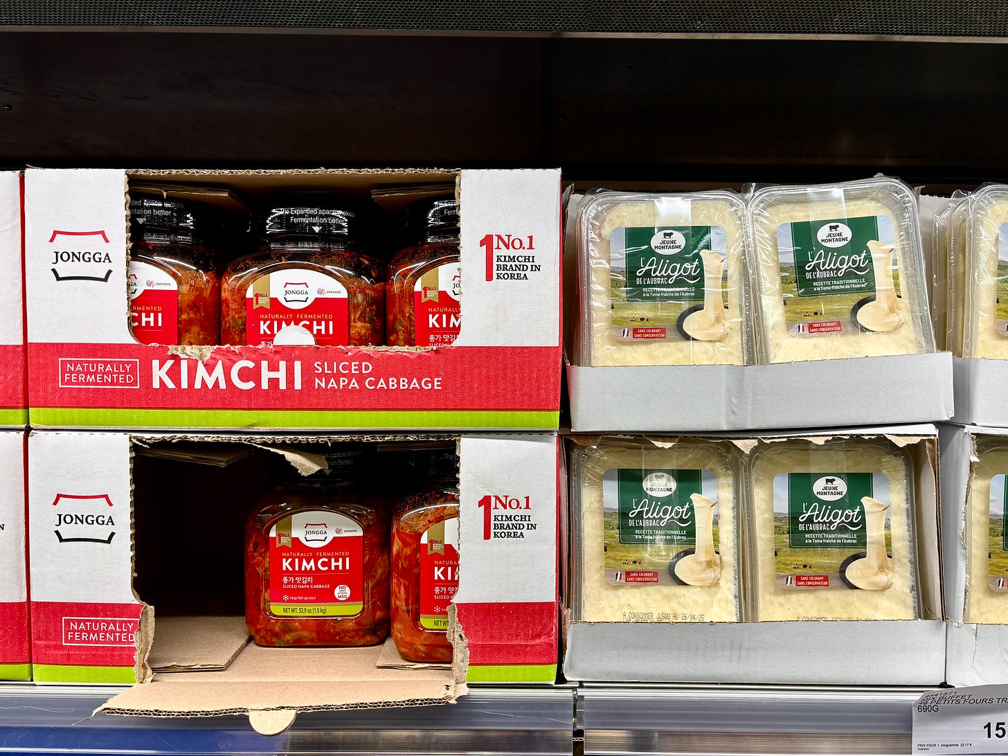 Kimchi is similar. It changes the longer it sits and can get fizzy and acidic. It works well for fried rice or kimchi jjigae, but I’ve been spending an inordinate amount of time going through leftovers in my kitchen lately, so I passed on the family-size kimchi since the two of us can’t go through 1.5kg (3.3 pounds) of kimchi in a jiffy. But it’s nice to see it alongside Aligot in the Costco France refrigerator.
