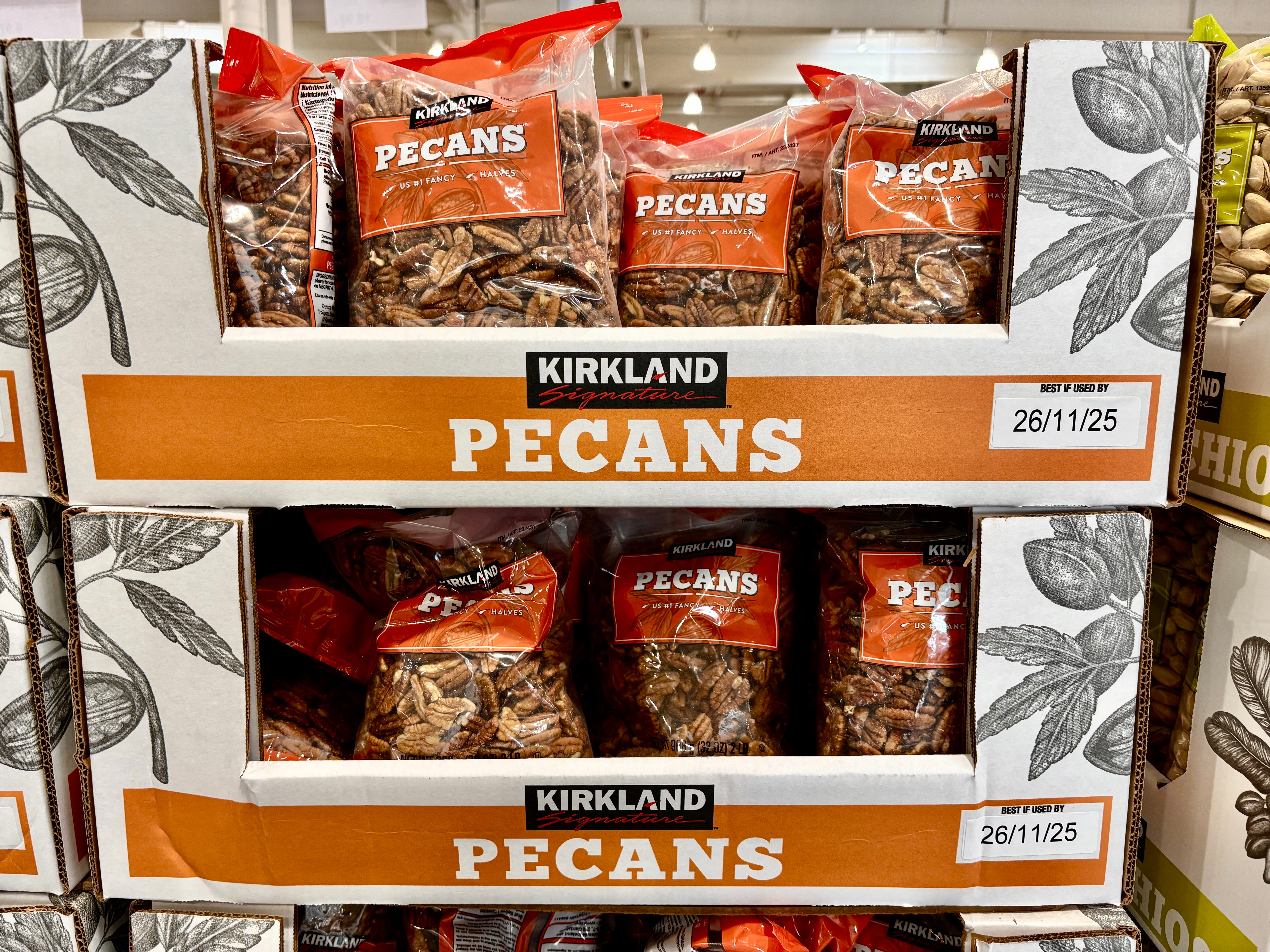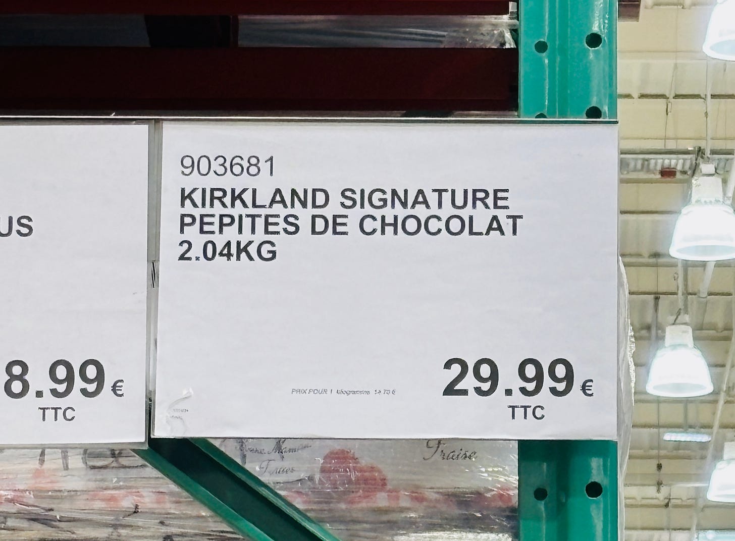 Even though I don’t go to Costco for a piece of ravioli cut in half, my #1 reason for going is for the pecans. I used to bring them back to France with me from the U.S., and they’re always fresh and plump, not dried out or old, as pecans tend to be in France. And they’re cheap: €14,99 ($16) for a 2-pound bag. I put two bags in my cart and made another swing through this aisle later to get two more.