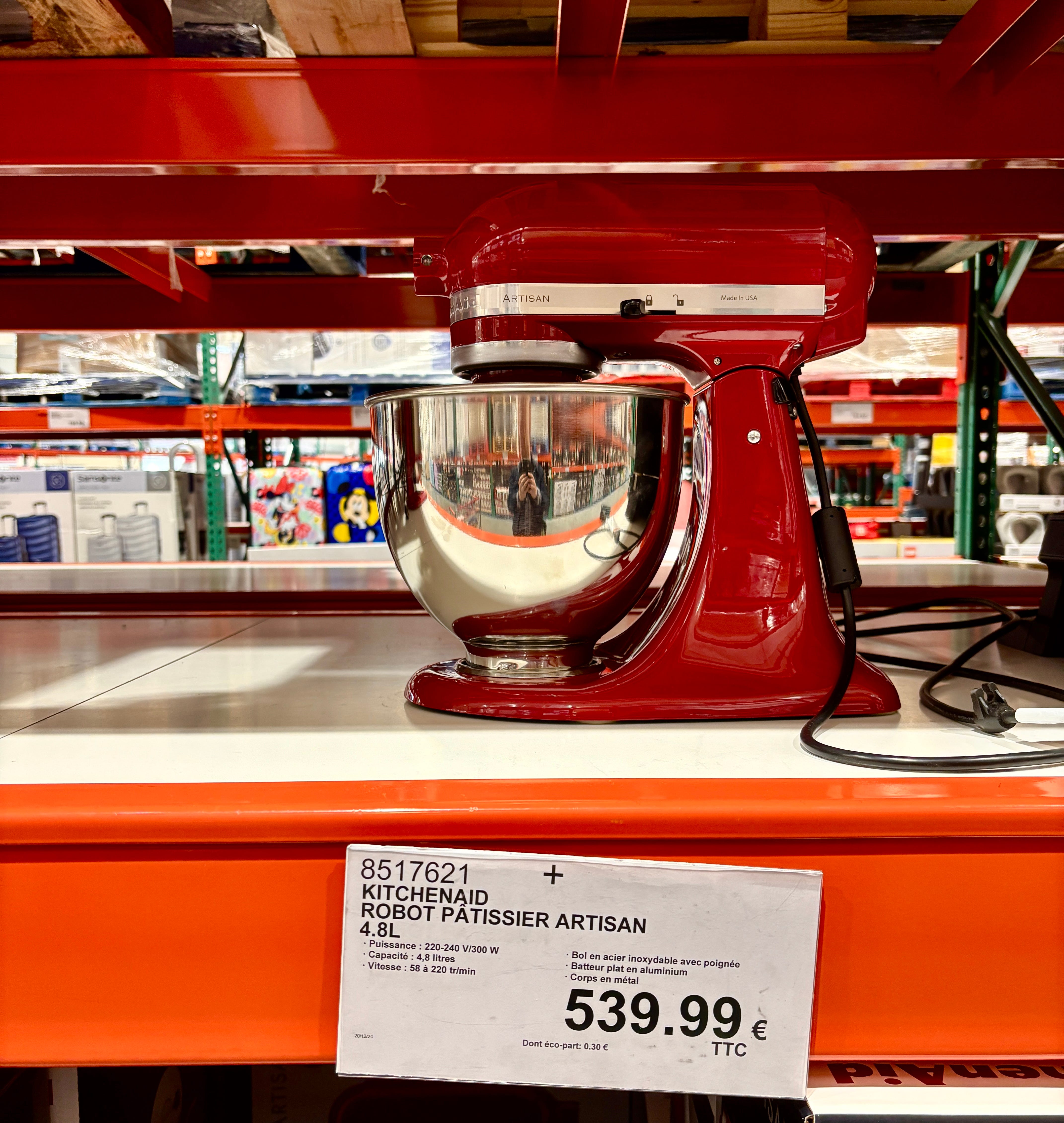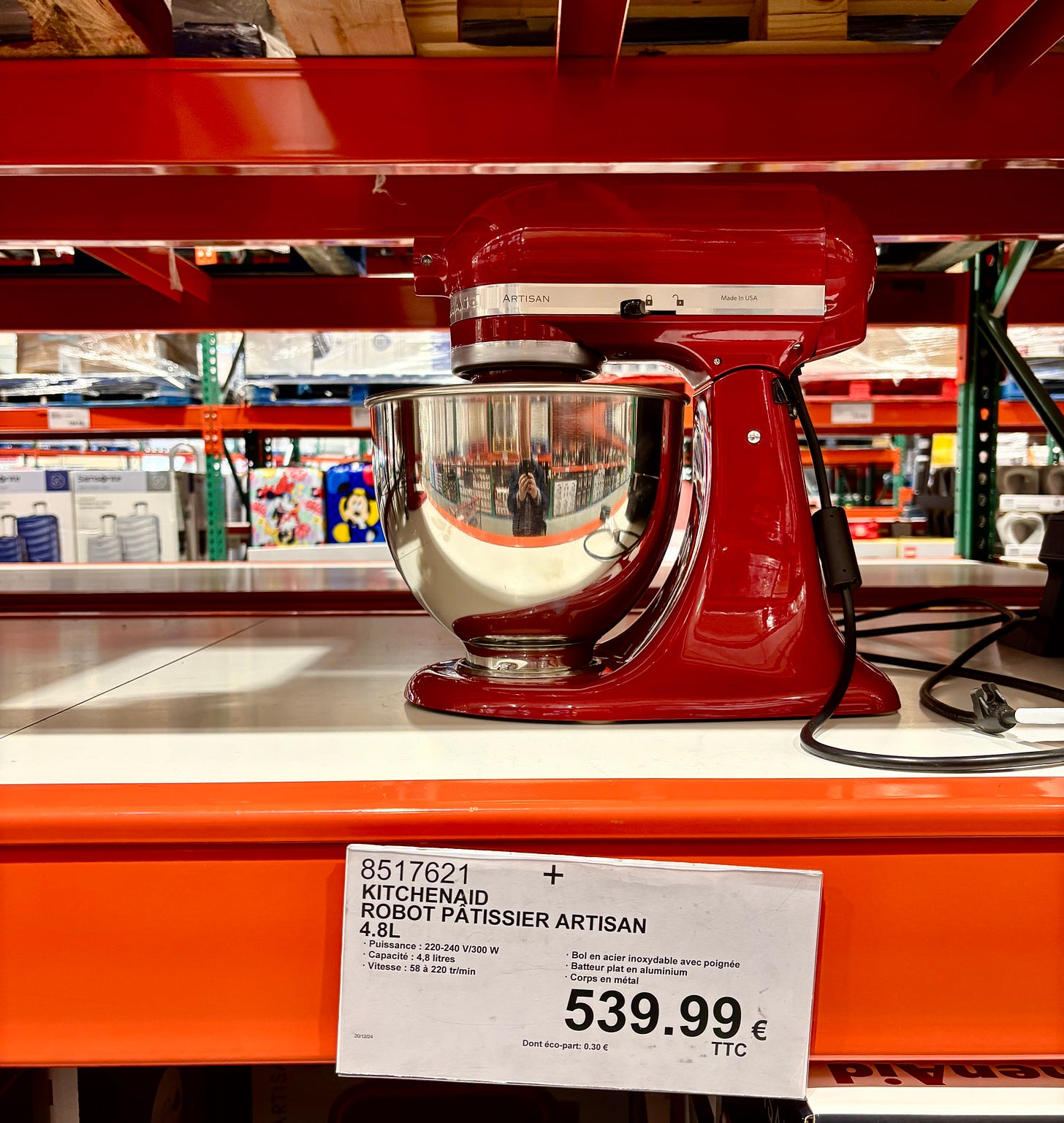 So there we were in Costco, one of their two stores in France, arriving after a 50-minute drive from Paris. The Costco stores aren’t easily accessed by public transit from Paris; the one we went to would have involved 1 1/2 hours of travel on two different métros, then taking an RER train, which included walking about ten minutes between each segment. So we enlisted Romain to take us in his car. He’s good for about an hour of shopping, then quickly goes downhill from there. So I have to carefully calculate my time with him and strategize ways to maximize my time, because I could spend all day in a store like this, and not just because I’m a professional. But because it was fascinating to see what they carry.
