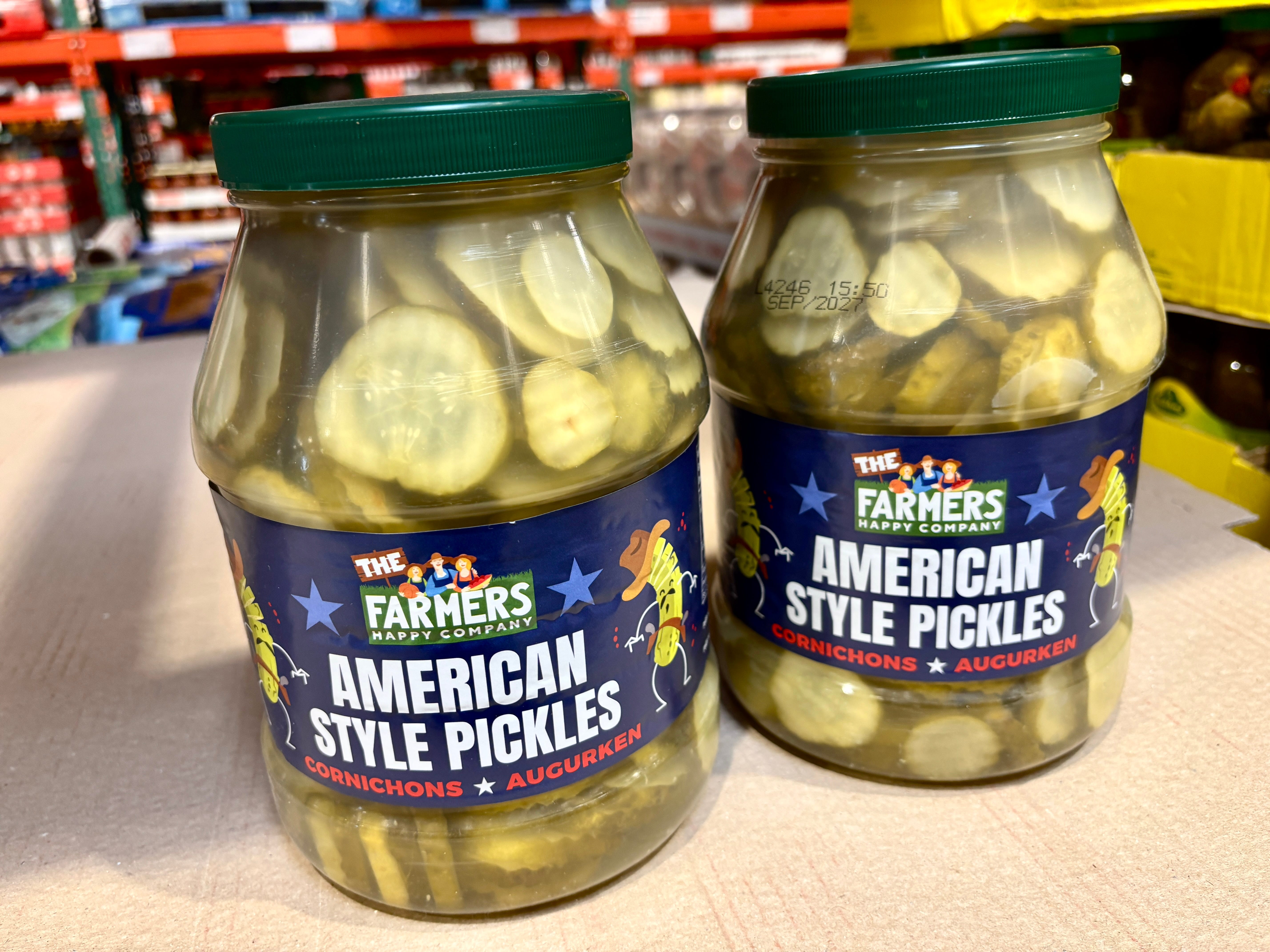 There were also big jars of American, er, I mean American-style pickles. Like most of the things in the “American aisle” at French supermarkets, which are things that I’ve never seen in America, I don’t know about these pickles from The Farmers Happy Company. If they are from the States, the person who came up with the brand name gets a C- in grammar. I obviously wasn’t an English major, but shouldn’t it be: The Happy Farmers Company? (Or, farmer’s.)