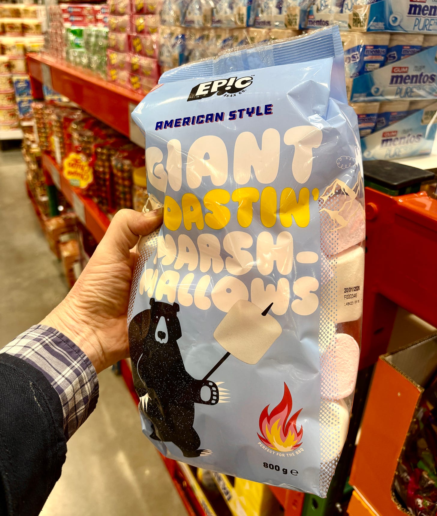 I haven’t figured out the fascination with putting colorant in marshmallows, which certainly isn’t American-style, unless something happened to marshmallows while I’ve been gone. As they propose getting rid of food dyes in the States, I keep hearing the argument that food dyes aren’t used in Europe, which isn’t true. But I’m coming out against food dyes in marshmallows, end of discussion. Like green Dots, those would get picked out if I bought these: