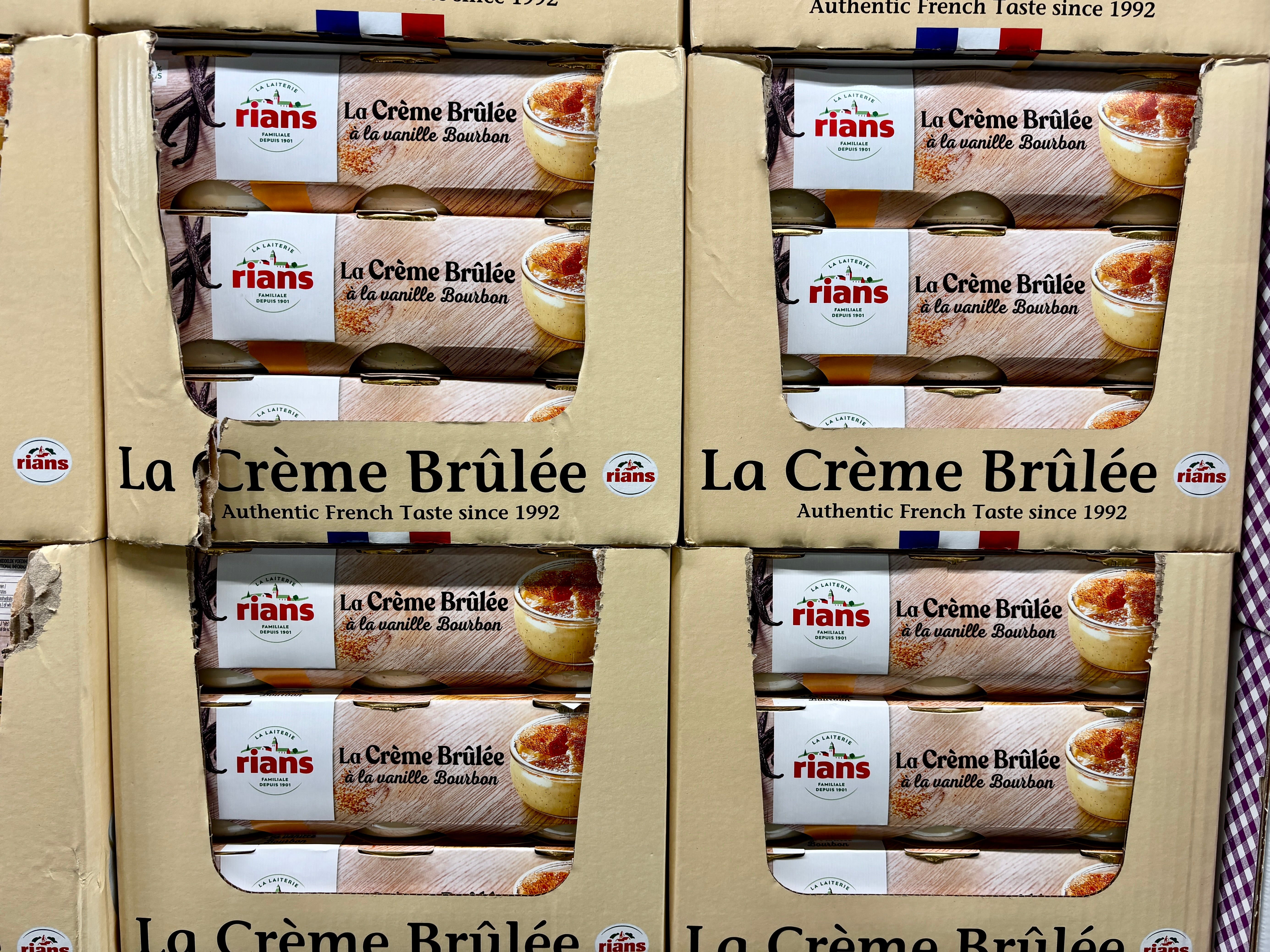 While there was a lot of American stuff at Costco France, “local” items include the 36-pack of macarons shown at the top of this post and individual pots of crème brûlée…although, interesting that the cases holding the crème brûlées are in English: Authentic French Taste since 1992. (Which to me, doesn’t seem long enough to brag about...)