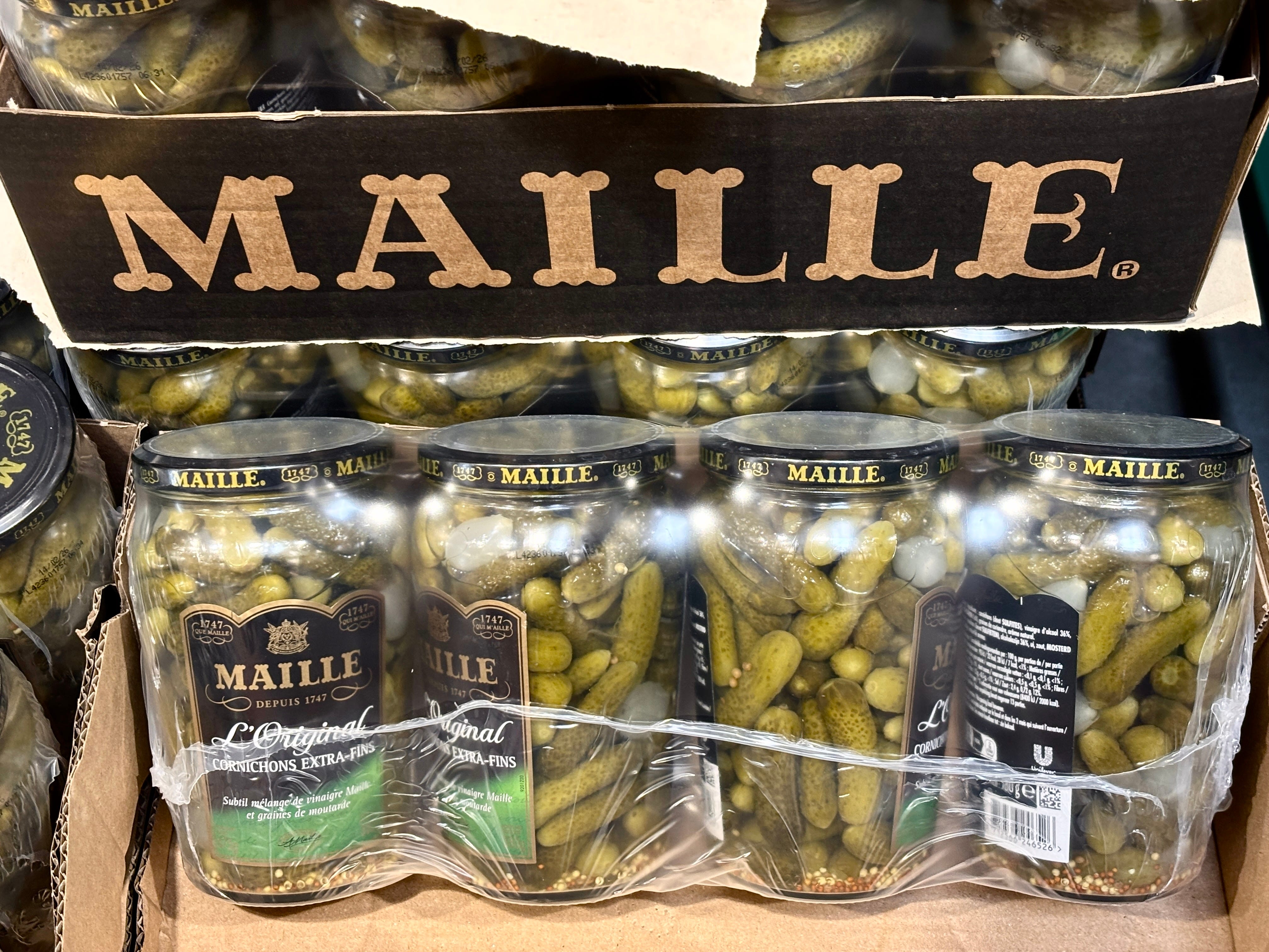 But they do have Maille cornichons, sold in handy 4-packs. The way Romain eats cornichons, I should have bought these, and now I’m regretting not buying them.