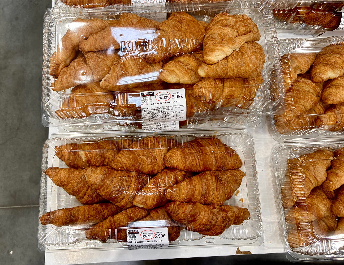 Over in the pastry aisle, one could pick up a dozen croissants for €5,99, around $6.75.