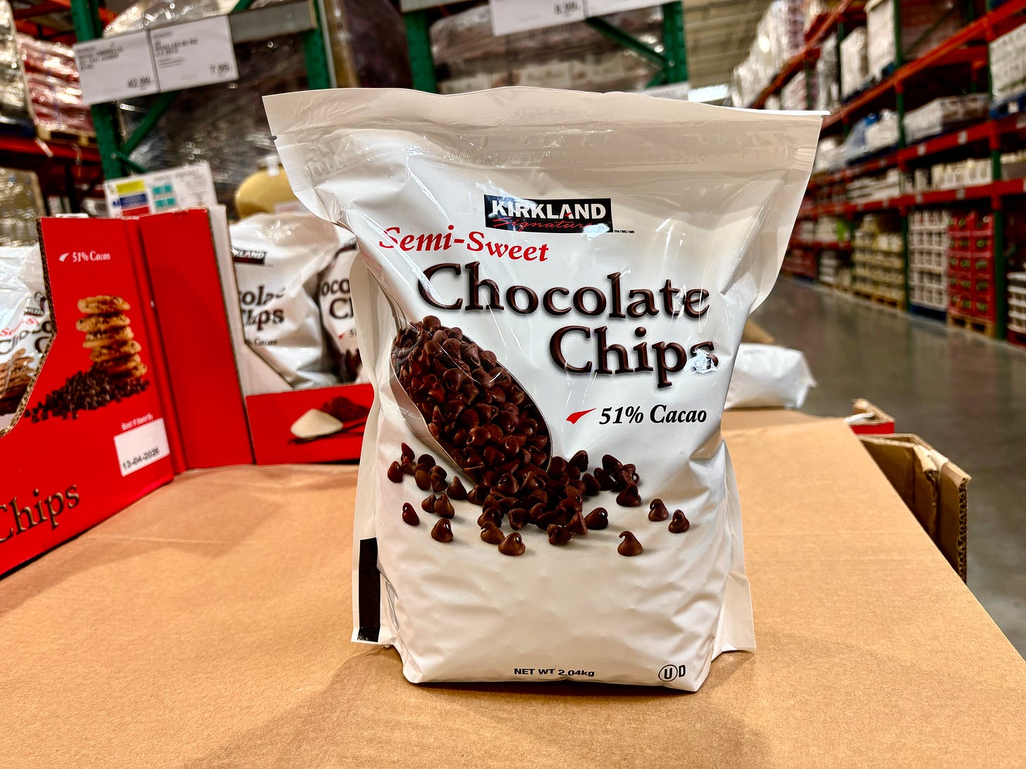 Over in the baking aisle, they were selling very generous bags of chocolate chips. Like how almonds and other nuts are sold in French supermarkets, they also sell pépites of chocolate in teensy 100g (3.5oz) bags, which are about enough to make six chocolate chip cookies.