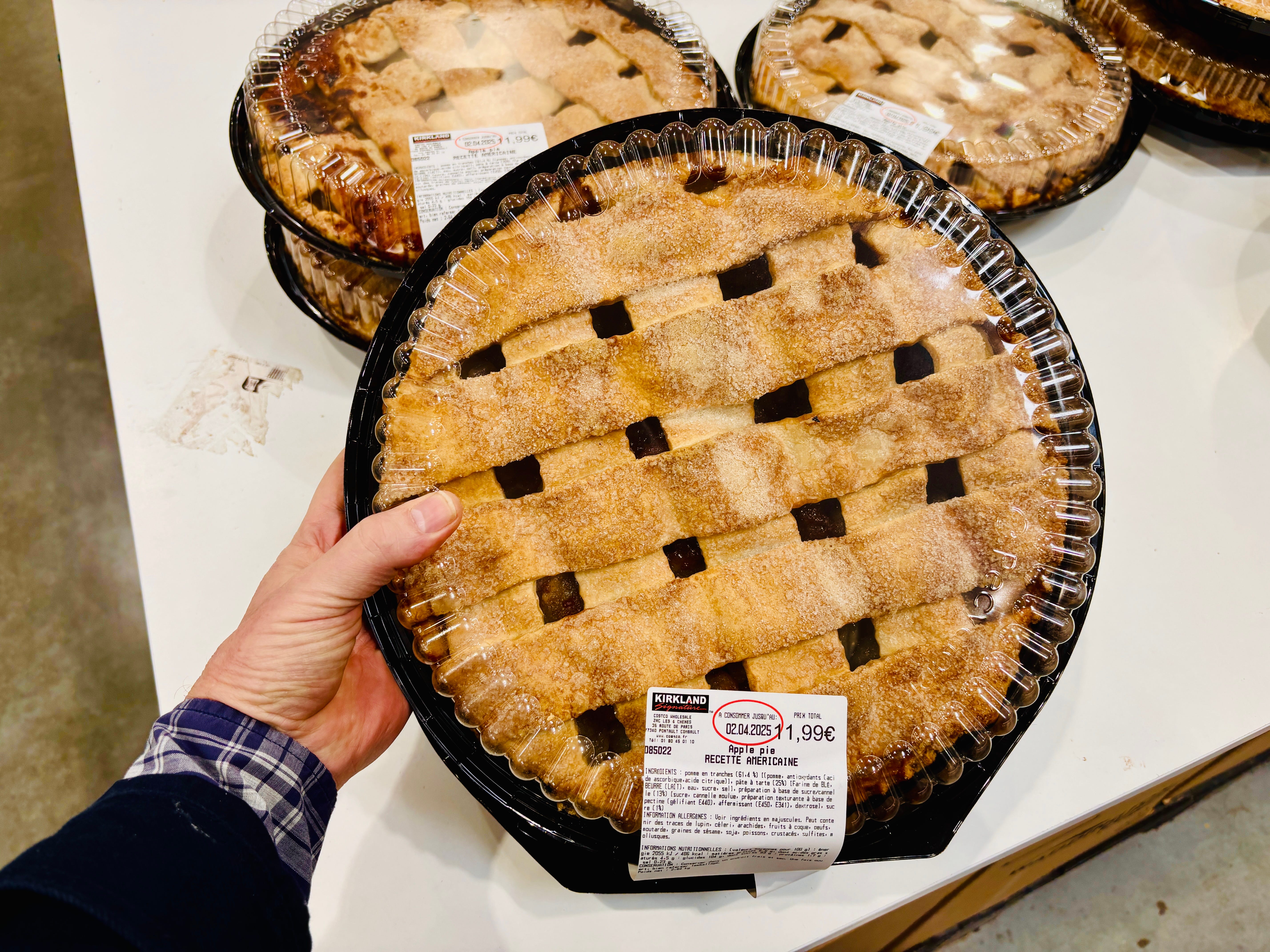 The apple pies they had on a table were bigger than any pie I’d ever seen in America. Kudos to them for having the oven space to bake them, but yikes, they’re huge and heavy. Like the beef jerky, I should have hung around to see who bought one of these, since “pie” isn’t a French concept. Yes, there’s pâté en croûte, seasoned meat surrounded by pastry baked in rectangular molds, but you don’t see ones made with fruit inside. The closest are croustades, which are regional specialties and usually made with filo-like dough. And I don’t think there’s a word in French for “lattice,” then I looked it up and losange seems to be the closest.