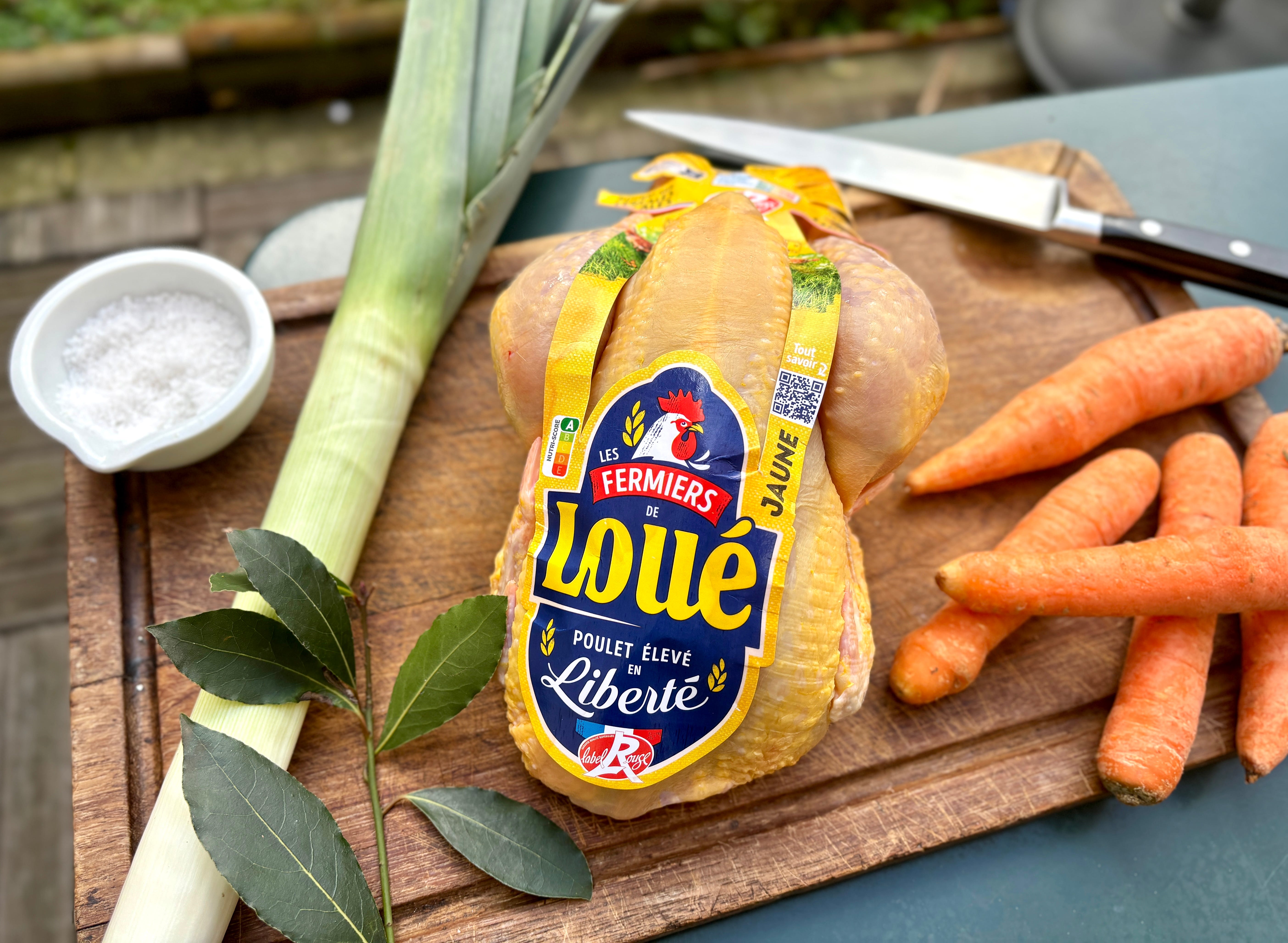 I make a sort of poule au pot, of sorts, where I just put a whole chicken, salt, carrots, and a leek in a stockpot, cover with water, and simmer for at least an hour. I might add some bay leaf or thyme and a few peppercorns, but the best is to add some chopped dill to the finished soup. They don’t use a lot of dill in France, so that was a surprise to Romain, and I felt bad I couldn’t find any when he was needed soup.