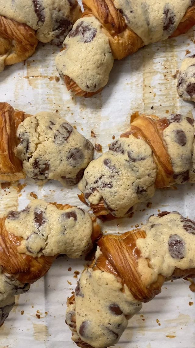 In my last newsletter I wrote a little screed against all the overloaded foods that people are piling sky-high and cramming in their mouths on social media, and mashups like Crookies, chocolate chip cookie dough croissants, which have become a “thing” in Paris, believe it or not. (Breaking: I also recently saw on IG someone stuffing babka with raw chocolate chip cookie dough in Paris.)