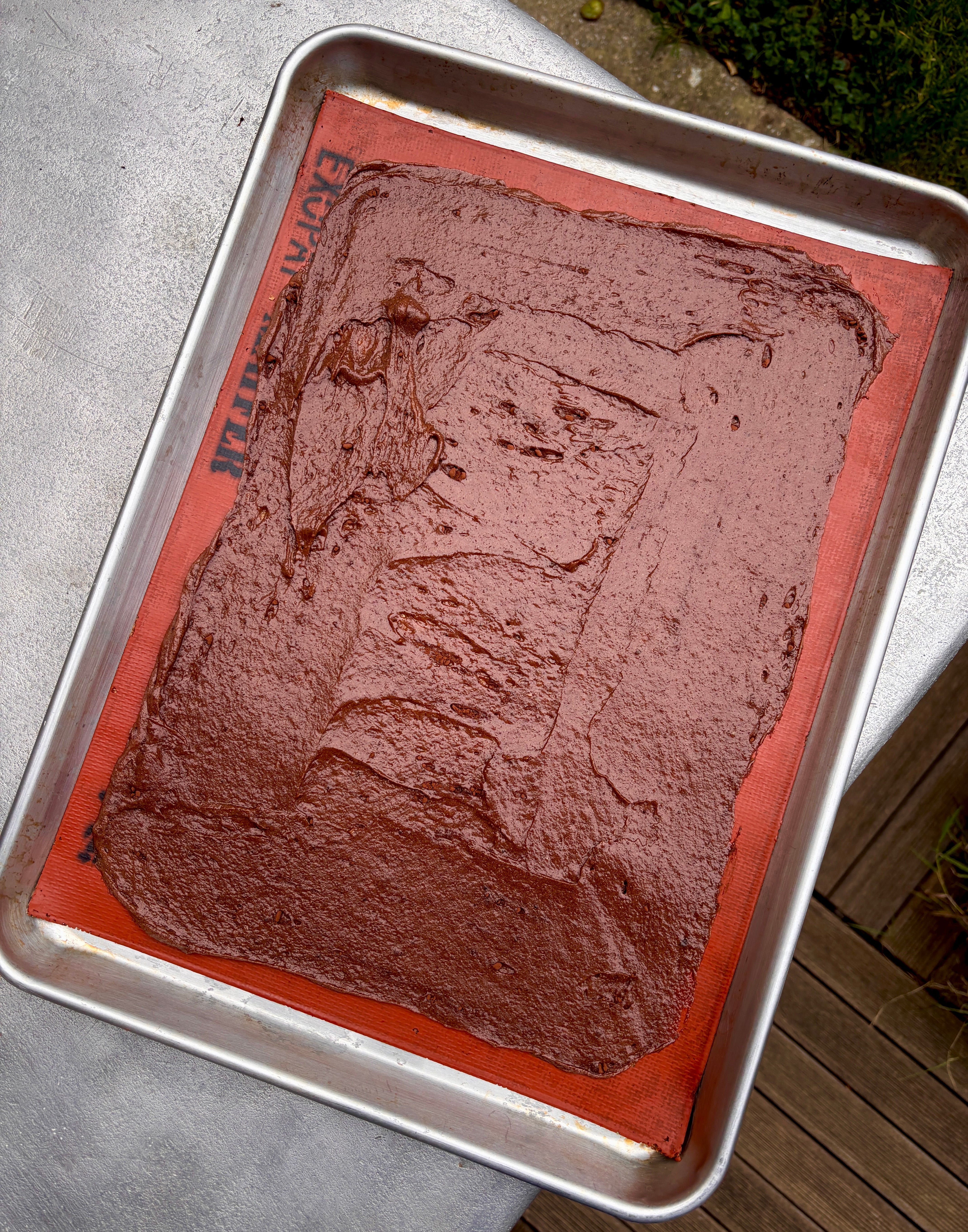 To make the brownie brittle, reduce the heat of the oven to 325ºF (160ºC). Line a baking sheet with parchment paper or a silicone baking mat.