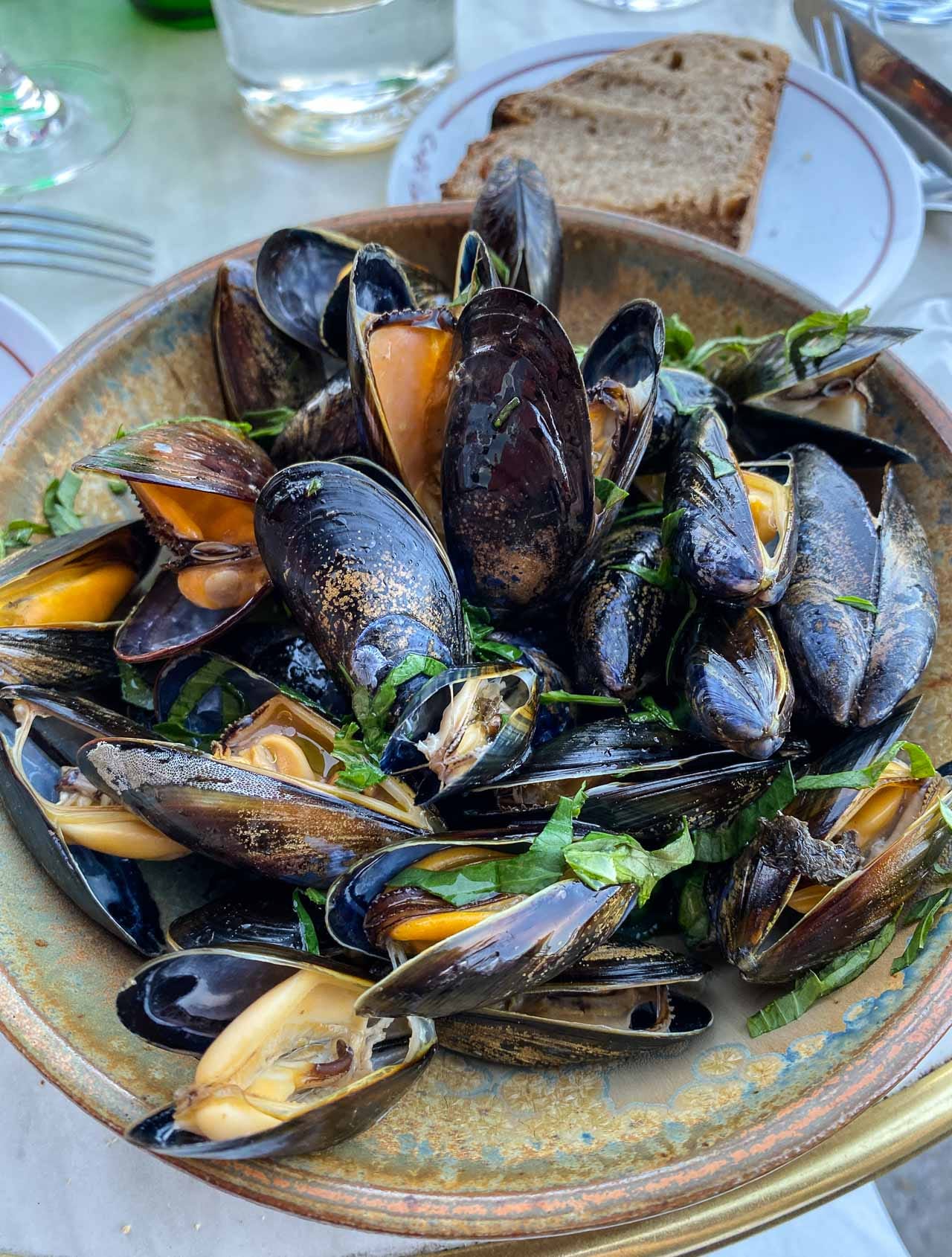 (Just a note on prices: the first courses run in the €12-18 range, with these mussels clocking in at €18, and main courses in the mid-to-upper €20s. The natural wine list is gently priced, and wine is available by the glass and 50cl carafes, which is about three-quarters of a bottle.)