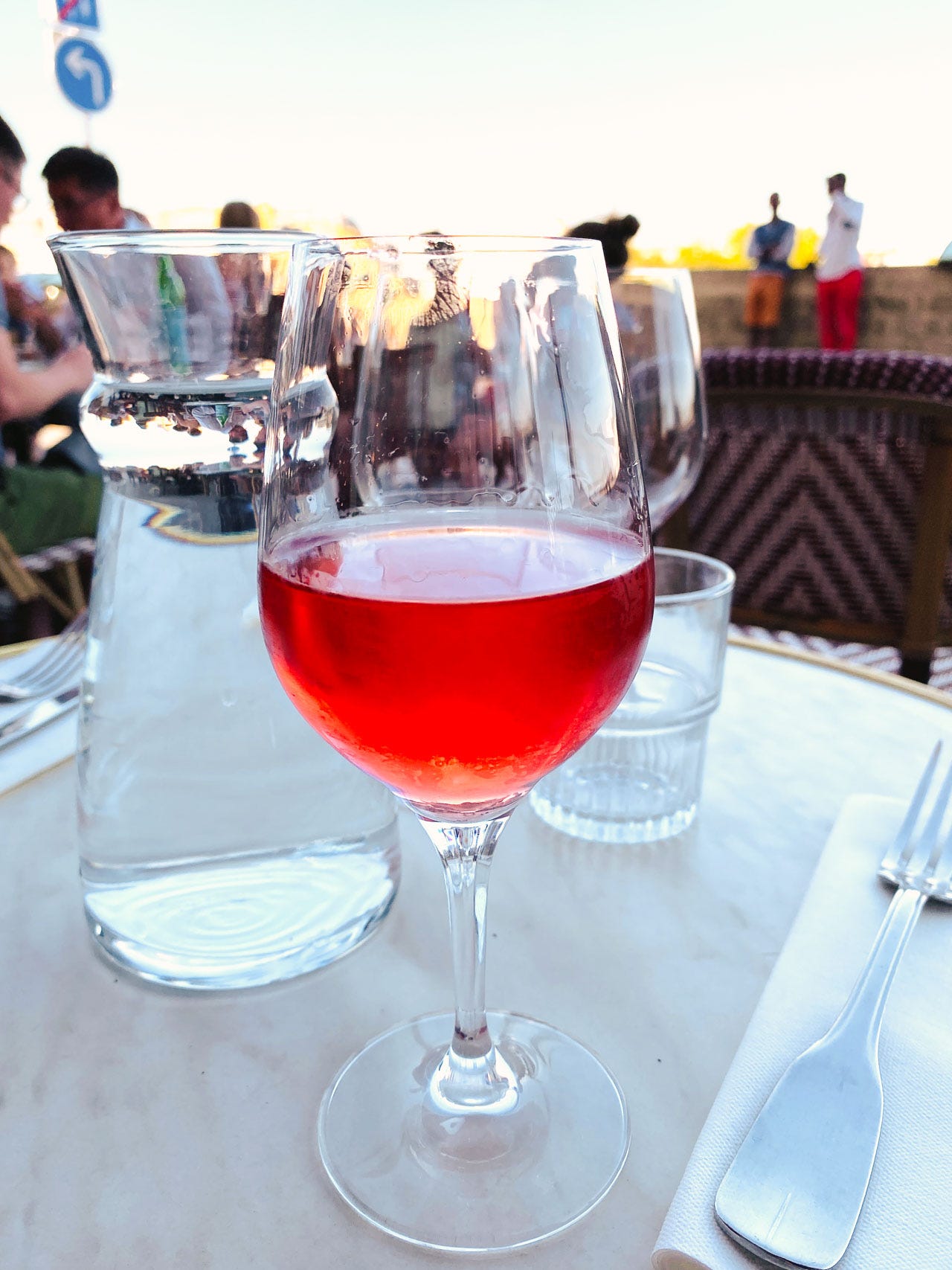 I know people say to avoid restaurants with a good view, which means bad food. But in the case of Café Les Deux Gares, I found the view quite nice. (And the food very good!) True, behind the low wall in front of the restaurant are the train tracks of the Gare de l’Est, where trains take Parisians to the east of France. But sipping a glass of rosé on a warm summer night high up above the tracks, which you can’t see from the restaurant terrace, almost feels like you’re at the beach. So you’ll see some rooftops…and a whole lotta sky, which is a rarity in Paris. And while the areas around the Gare de l’Est and the Gare du Nord—aka the deux gares—used to be places you’d be hesitant to recommend to those unfamiliar with the city, for those who don’t mind going “off the beaten path,” you’ll be rewarded with a lovely evening out, as we were.