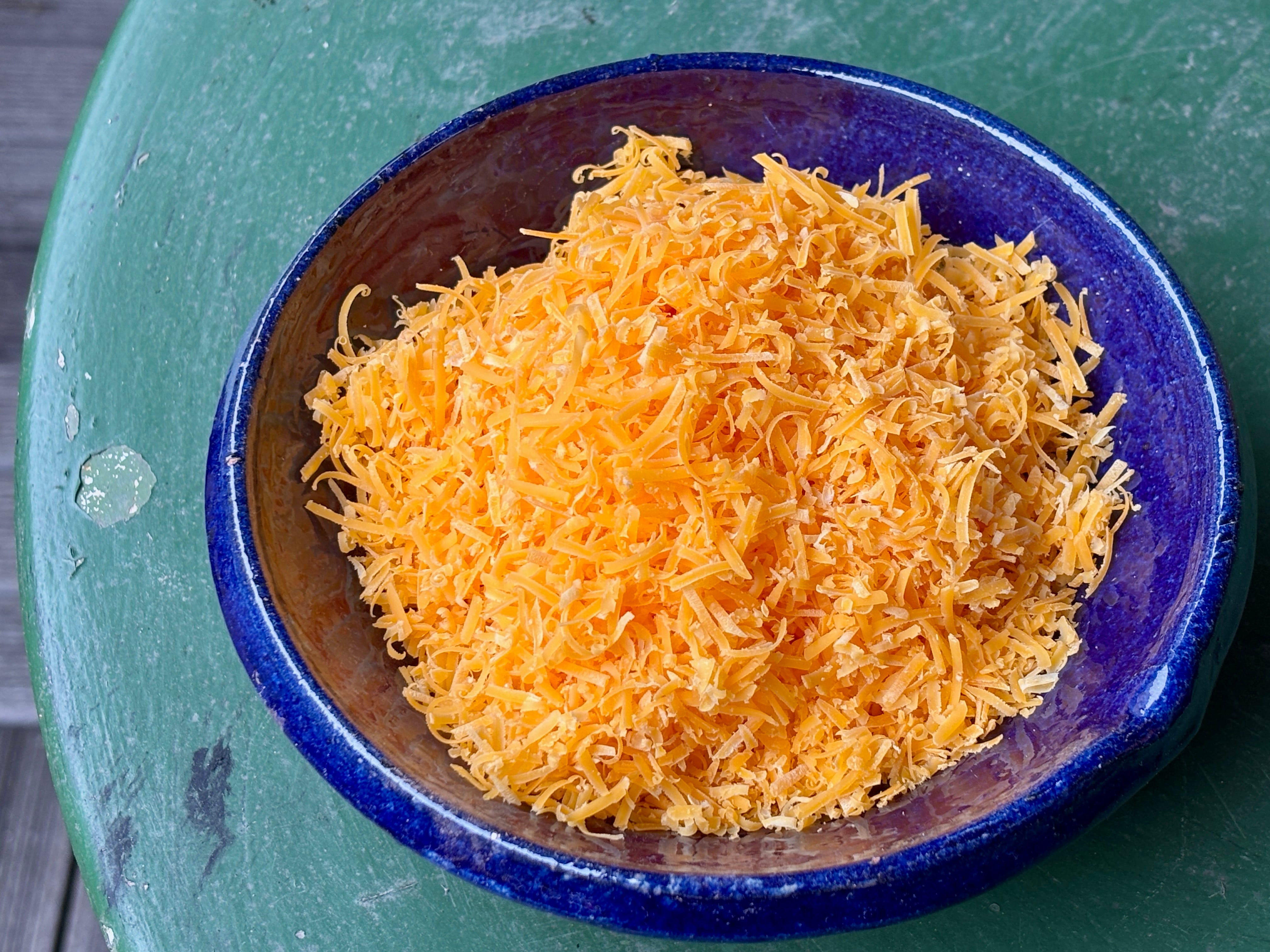 4 ounces (115g) grated cheddar or mimolette cheese, divided