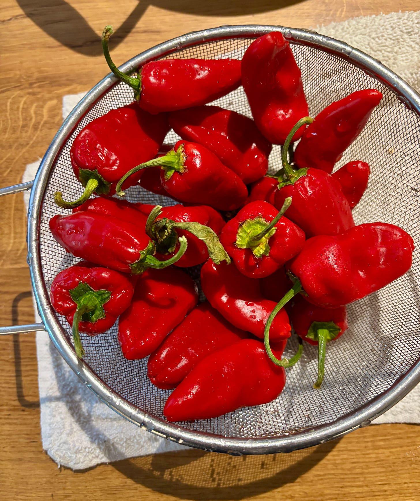 Often in the summer we’ll head to the south of France and this year, the woman who runs the farm stand in the village had a wooden crate filled with chile peppers. Almost everything else was sold out by the time we got there. Her produce is beautiful and it’s popular, but you need to have patience because once it’s someone’s turn, they need to spend some quality time catching up with her :) So you can’t be in a hurry.