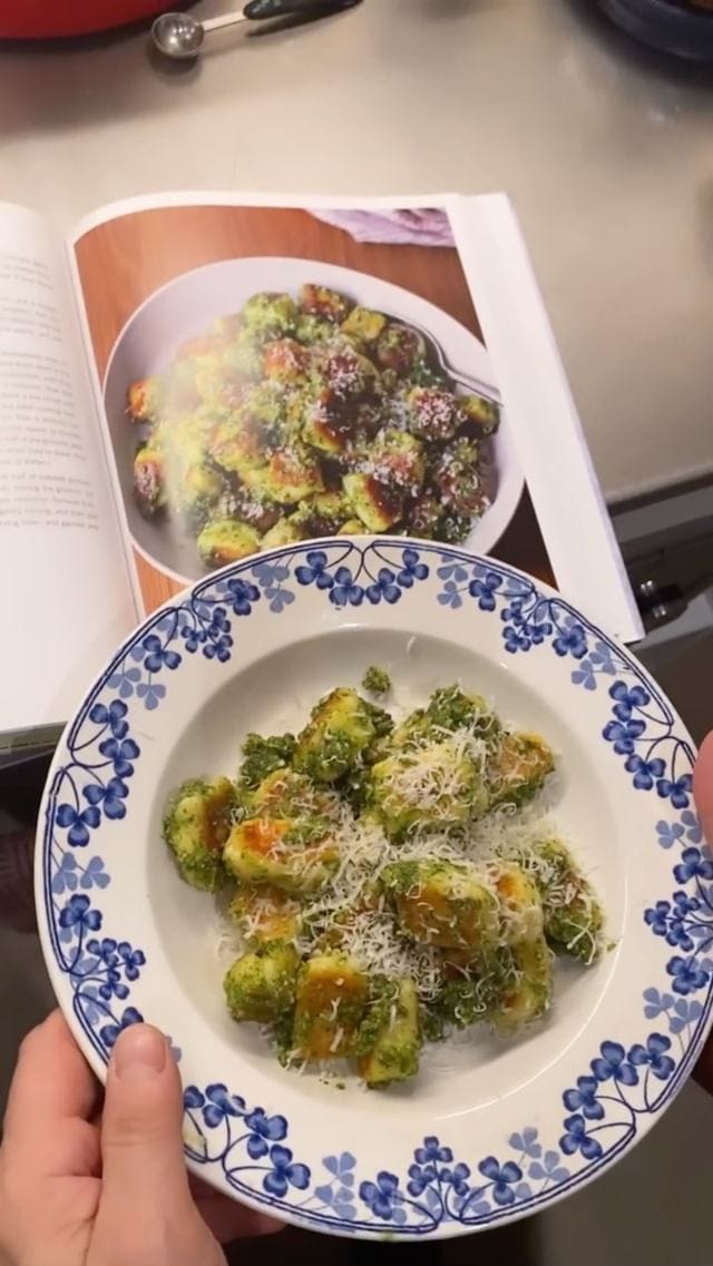 I have several chocolate chip cookies in my repertoire, including those with buckwheat, figs, and salted butter, but when I got Deb Perelman’s latest book, Smitten Kitchen Keepers (available on her website, Amazon, Bookshop, and at your local independent bookstore), I’d bookmarked a bunch of pages—and made her toasted ricotta gnocchi with pistachio pesto (below)—but was intrigued by her chocolate chip cookies with salted walnut brittle. How could I not be?