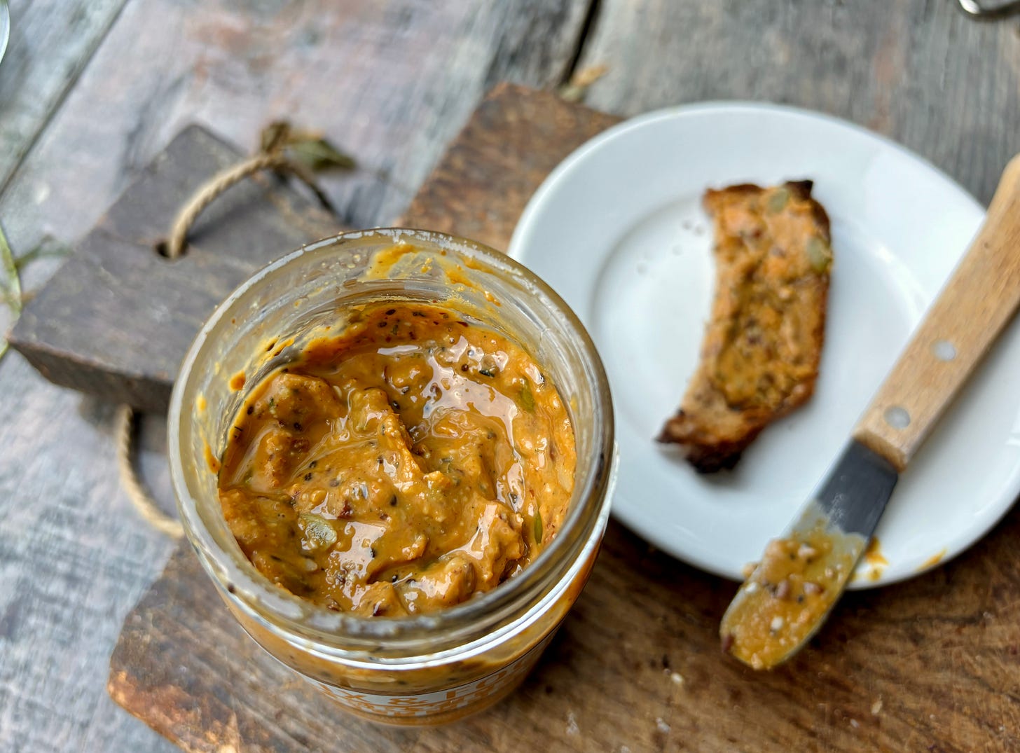 So when a friend came bearing some necessities, she also brought me a jar of Fix & Fogg Everything Butter. I have cupboards of condiments and spreads that I’ve been given over the years, which are on my docket to try — from smoked preserved cherries to jars of premixed baking spice mixtures, which are a nice idea, but I can’t use them in recipes that I share because I’m sure exactly no one would appreciate a recipe that calls for 1 teaspoon of a baking spice mixture they had to order by mail. But it’s the thought that counts.