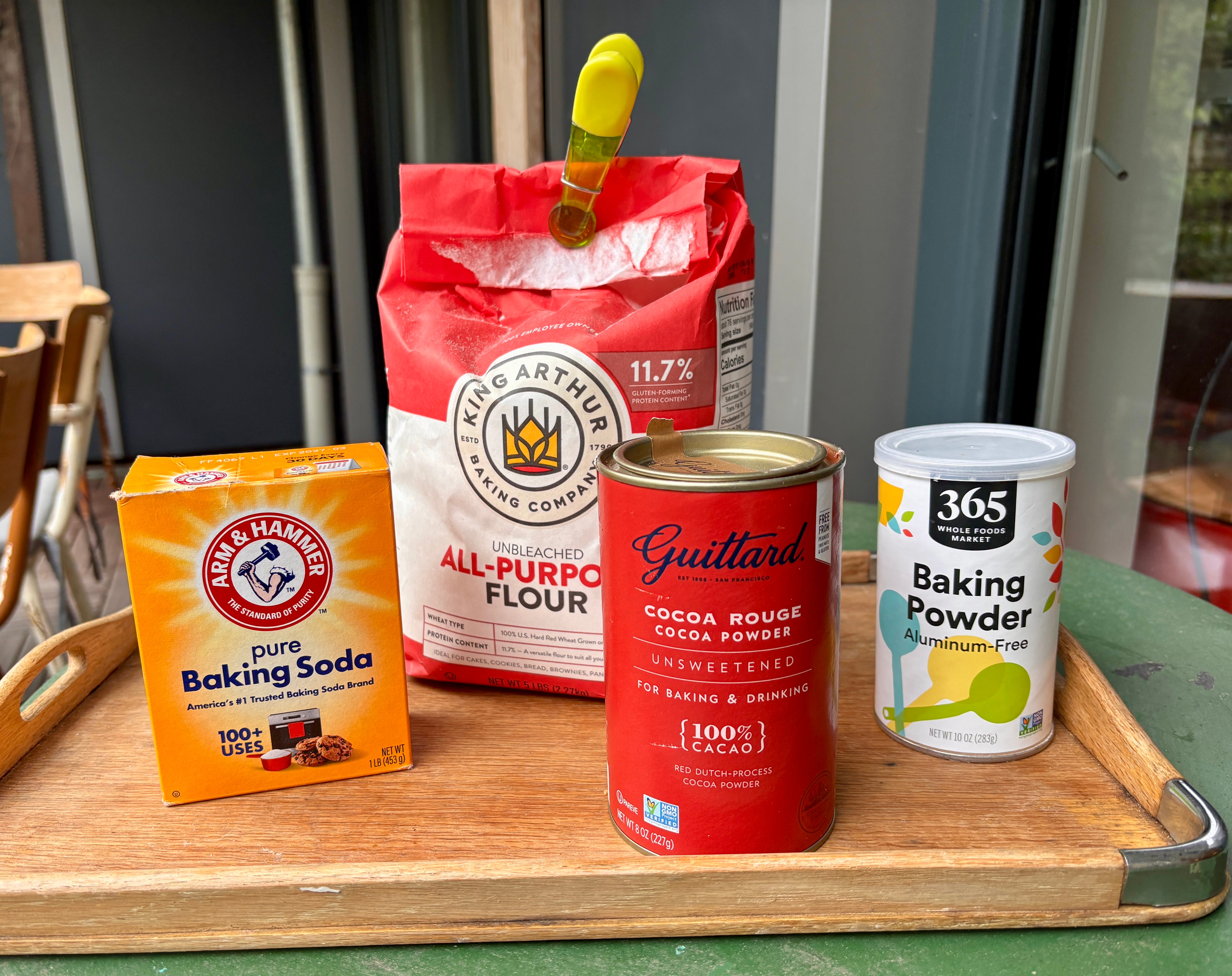 This year I was invited to a dinner and was tasked with making an American dessert by my French-American hosts. Since the theme was américain, I decided I should use American ingredients and dug into my stash of King Arthur flour, Guittard cocoa powder, aluminum-free Whole Foods baking powder, and Arm & Hammer baking soda to make my dessert.