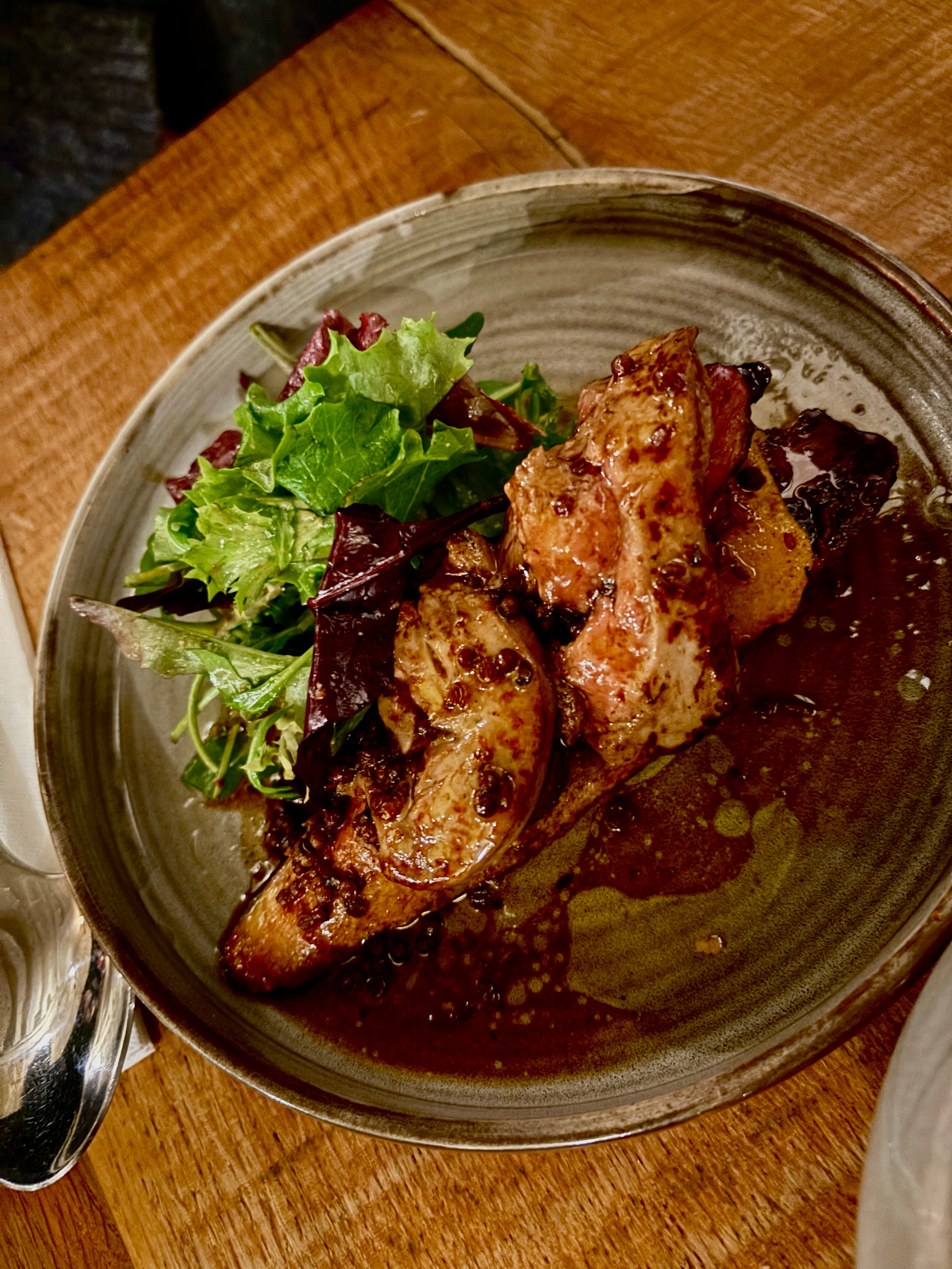 She was kind enough to let me have a bite of the dish, which was thick slices of caramelized bread with sautéed foie gras on top, along with pickled fruit and a touch of cumin.