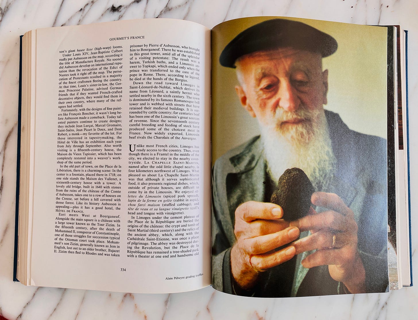 The recipes in Bouquet de France aren’t as detailed as modern recipes; for example, “Line a tart pan with short pastry,” and the Cassoulet recipe covers only two-thirds of a page, compared to mine in My Paris Kitchen, which covers 2 1/2 pages. But both books are evocative travelogues and snapshots in time, with photos. If I had to choose one book over the other, I’d get Gourmet’s France, which is more contemporary, and the recipes, such as Smoked Goose Tongue and Liver in Aspic, Pork and Prune Pie, Caramelized Cream Puffs, Fondant au chocolat, and Honey & Almond Tart, offer more guidance. As one online reviewer noted: “The book is still worth the price!”