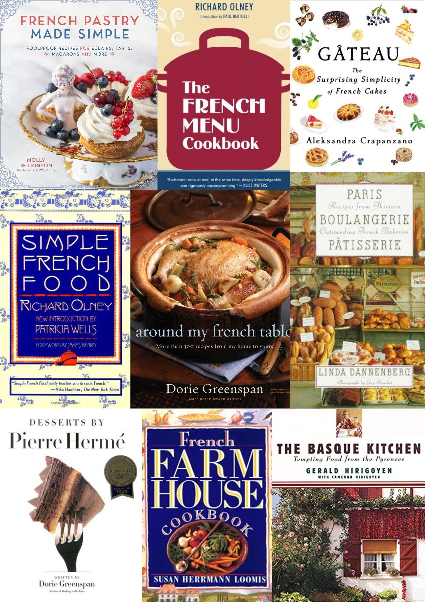 Baking Chez Moi and Desserts by Pierre Hermé by Dorie Greenspan are both great and very approachable baking books, the latter translating the recipes of Pierre Hermé for American ingredients and pan sizes, and audiences. Paris Sweets is Dorie’s compendium of dessert recipes from favorite bakeries around Paris.