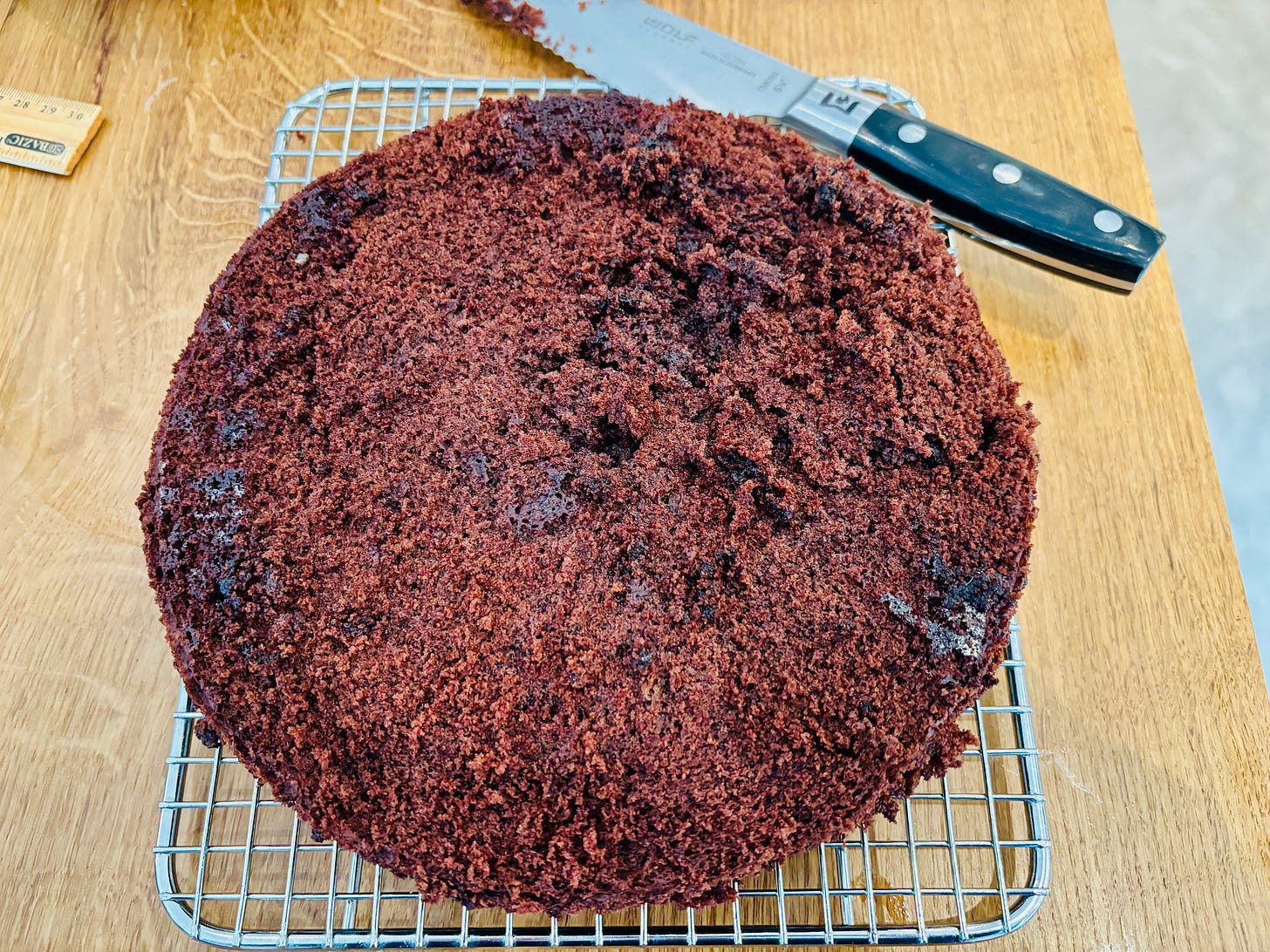 Devil’s Food Cake isn’t known in France, nor are American-style layer cakes, and I had to explain to Romain that it got its odd name because the color of the cake was reddish in hue.