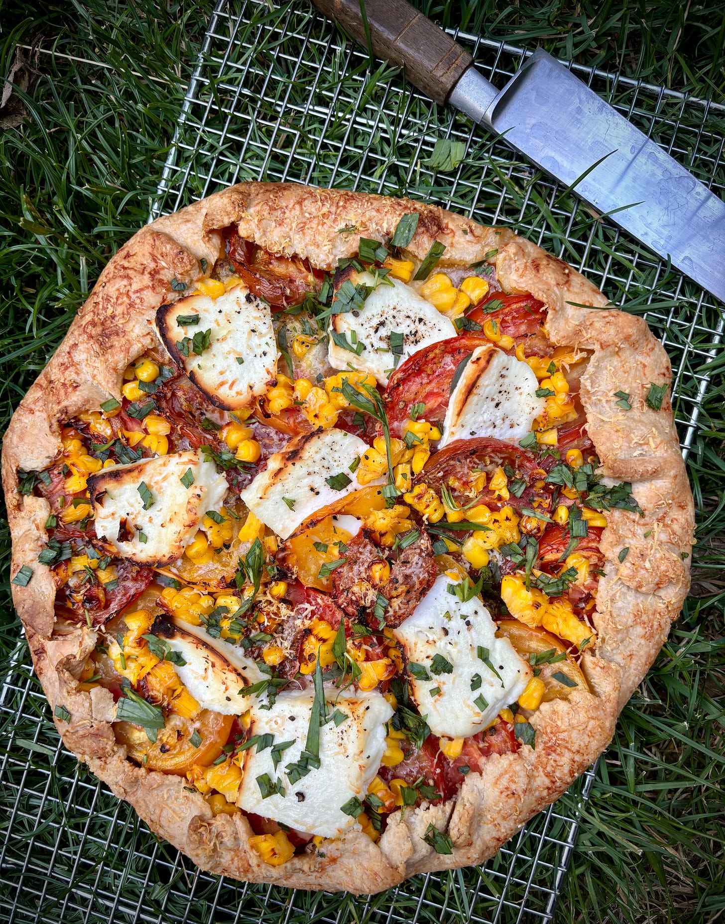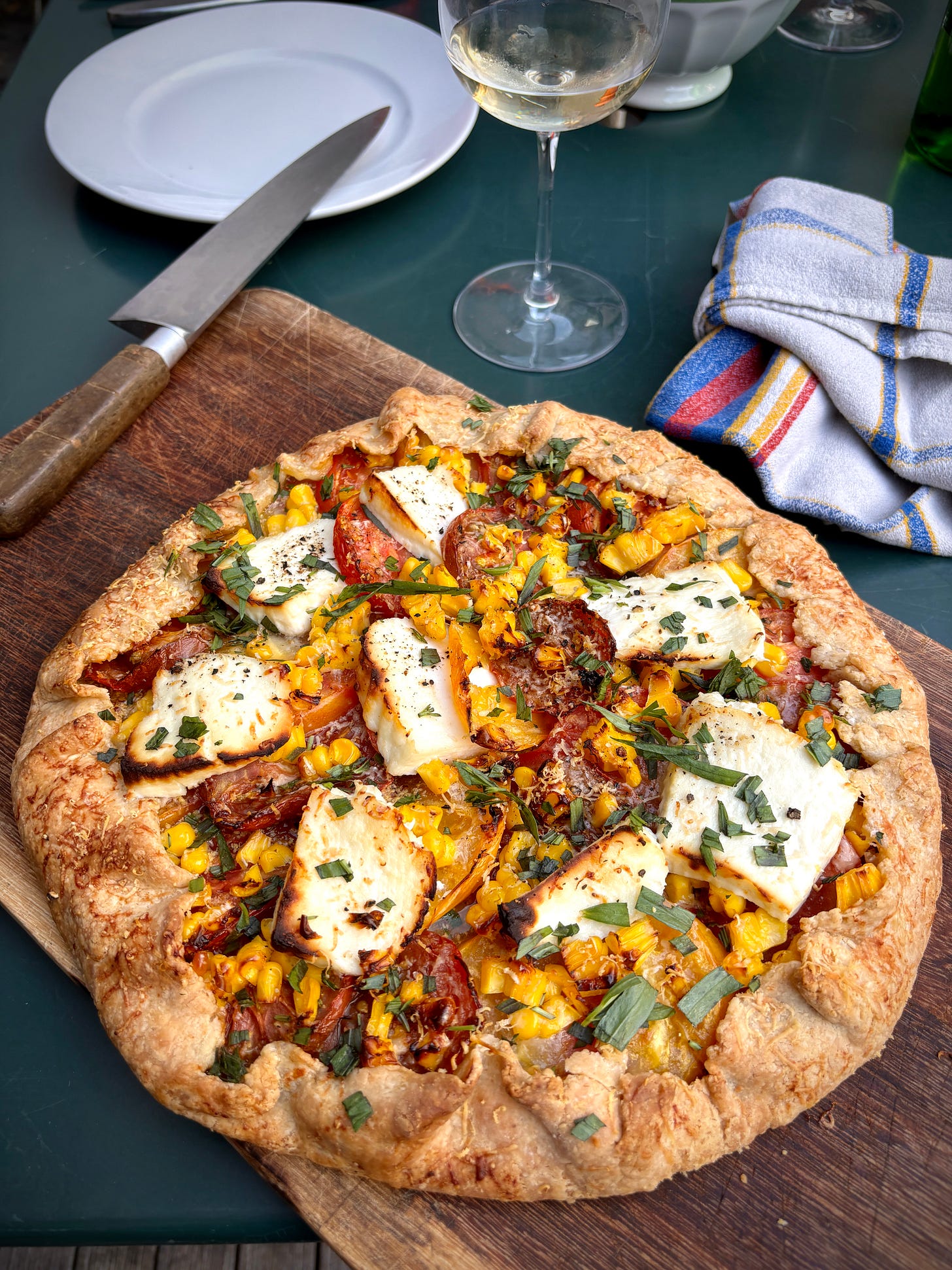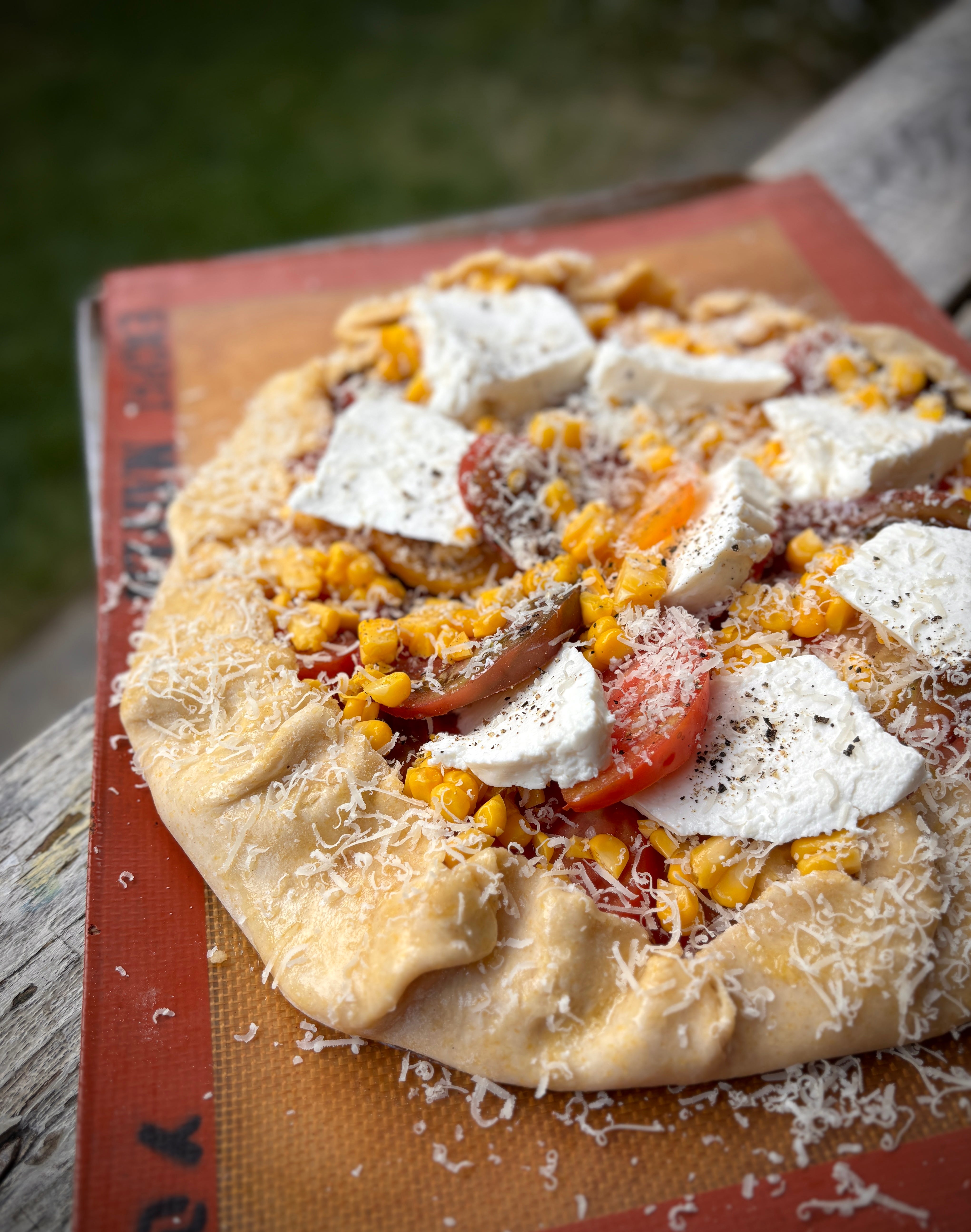 I’ve added corn kernels to this tart before baking when I had a hankering for corn. (Fresh or frozen will work.) You can finish the tart with a flurry of fresh herbs, such as basil, tarragon, savory, or parsley. I also like it with swipes of pesto or Calabrian chili paste on it, added after it’s come out of the oven.