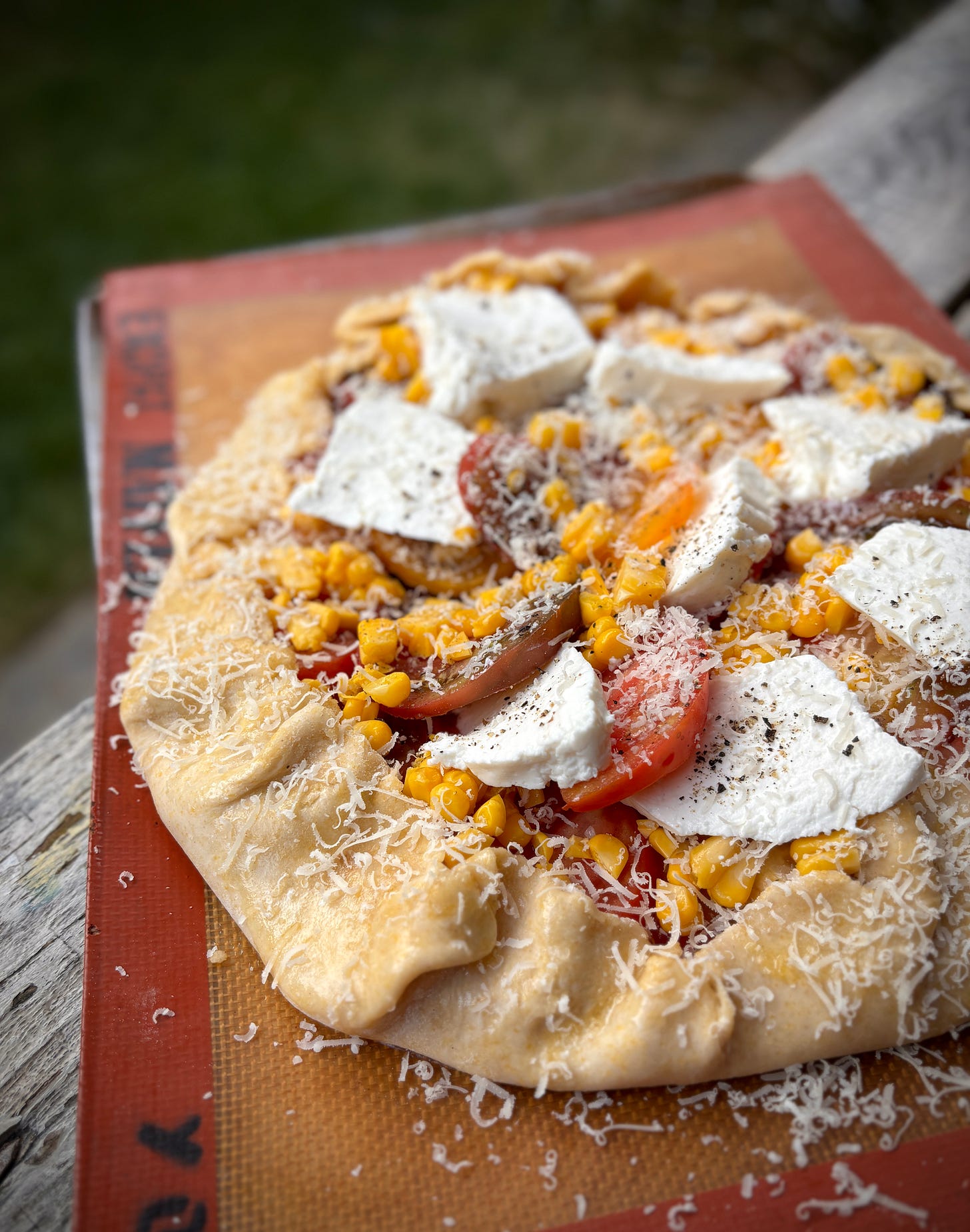 I’ve already made this tart about a half dozen times this summer, making it once with corn, showering it with fresh tarragon from our garden (which, unlike the tomatoes, is thriving) after baking. Other times, I’ve served it with a smear of pesto on it after it’s baked, and I’ve even spooned some Calabrian chili paste on it. Some of my American friends with French partners tell me that I’m fortunate to have a French partner who likes spicy food as many don’t like food qui pique, although folks who don’t like strong Dijon mustard can buy mustard that’s mi-forte, partially strong. But I suggest going full-on here.
