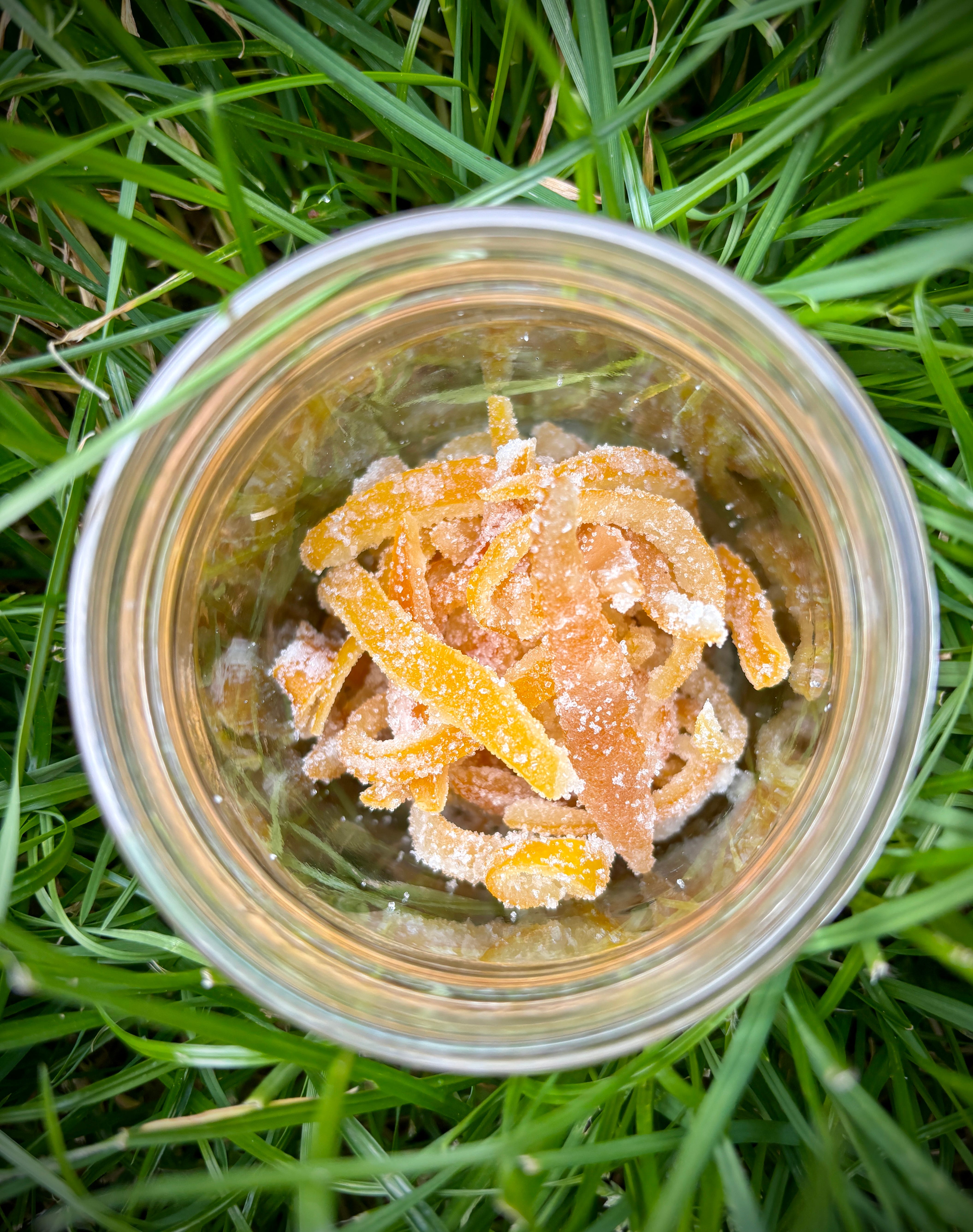 I’ve been nursing it back to health by washing the leaves and bathing them in neem oil. I harvested the few remaining lemons and candied the peels, which I hope holds us over until the next crop of Meyer lemons arrives. Fingers crossed!