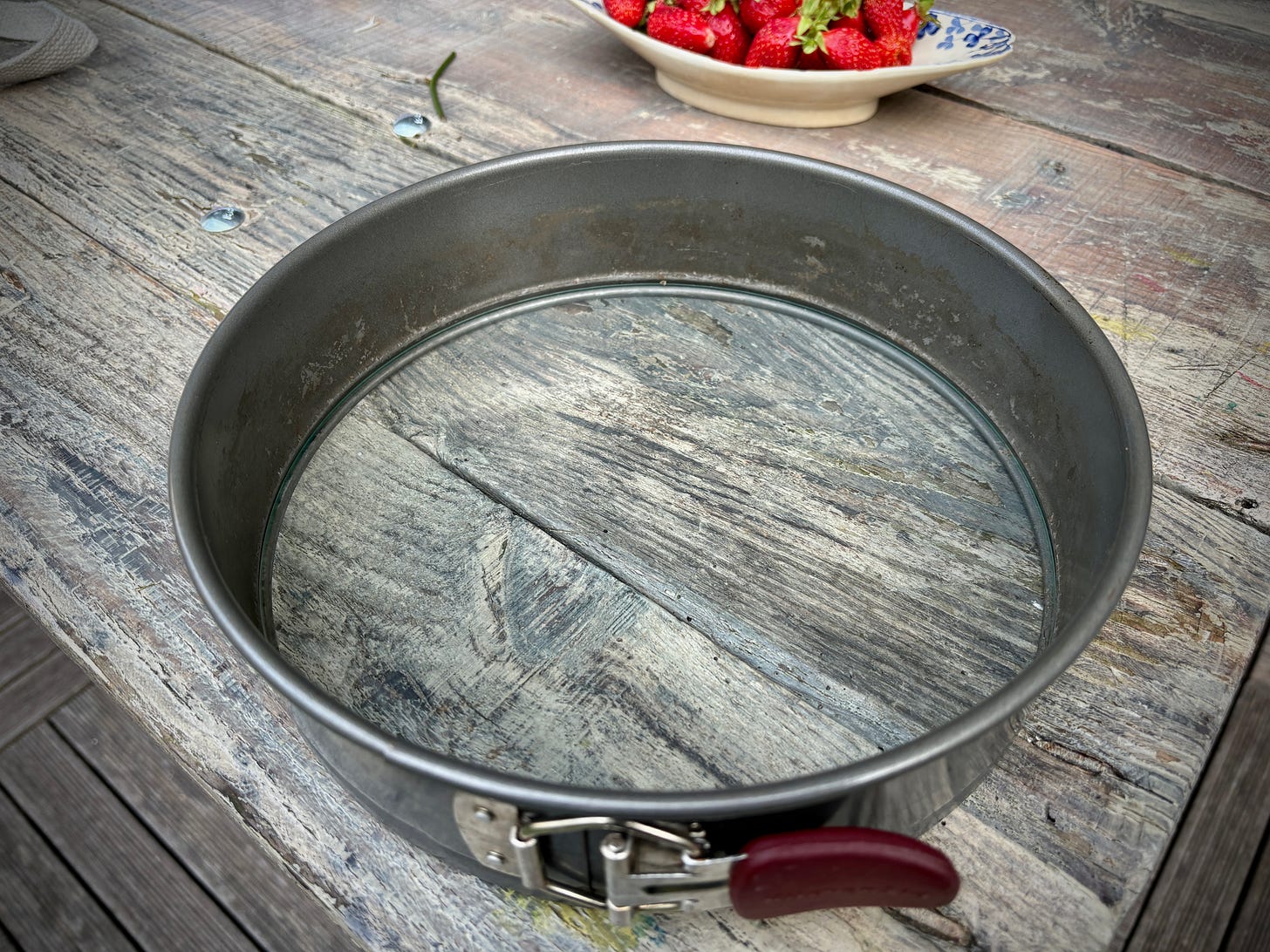 The one I have, above, is no longer being made, but there are others available, and a quick search online turned up several that are priced around $20/€20. Norpro in the U.S. makes one, and Dr. Oetker sells them in Europe. I have a stack of cake pans, mostly made by Parrish Magic Line and Ateco, but my glass-bottom springform pan has a special place in my collection of bakeware and is one of the most-used cake pans in my kitchen.