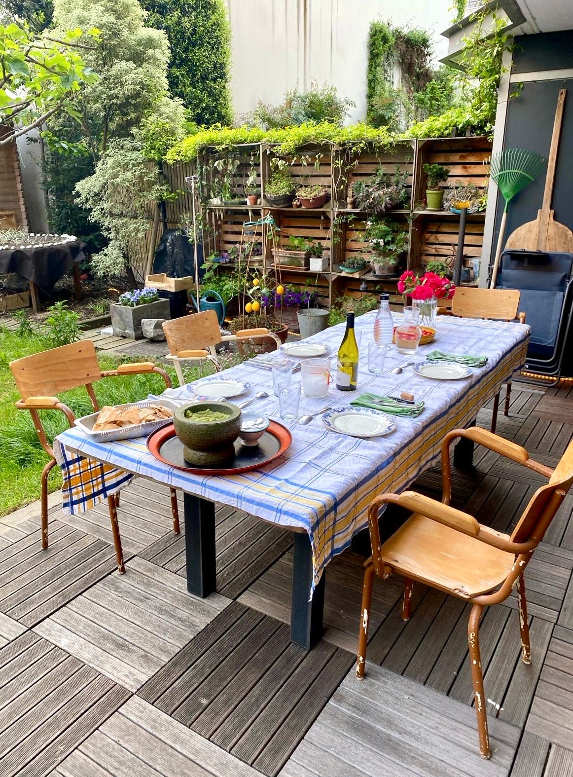 Finally! After what felt like the longest stretch of rain in the history of Paris, the sun broke through in May for a few days, so we quickly invited our friends Heather and Fred over for dinner in the garden. I often joke that I’m terrible at entertaining (and want to write a book for other people who are also terrible at entertaining — I still can’t figure out how to make dinner and also be with guests), but I’m good at opening oysters. So that’s what we served.