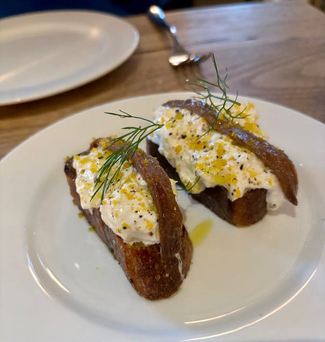 Dessert was burnt honey ice cream, blood orange sorbet, and house-made donuts with crème fraîche and pear jam. My friend said I should try to re-create the burnt honey ice cream at home, but since I’m deep in the weeds with my own recipes for current book projects, my dance card is full. But I found recipes here, here, and here.