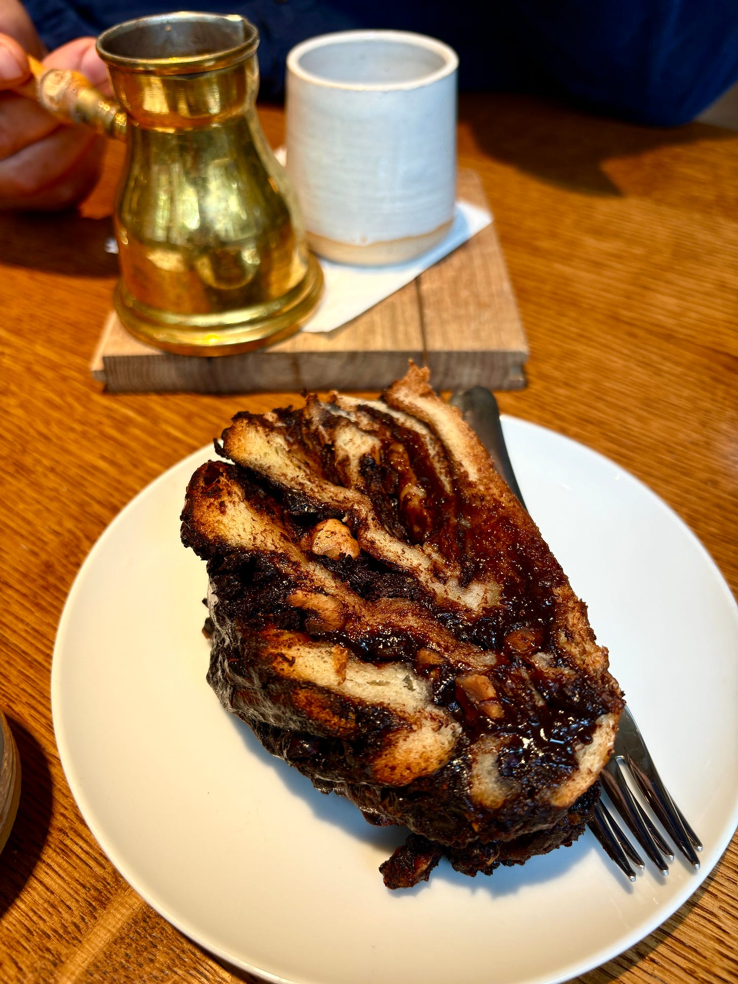 For dessert, I had the best chocolate babka I’ve ever had in my life. People often use the words “life-changing” (sometimes to get clicks), but since you’ve already read this far, I’m going to say that their babka was, indeed, life-changing. It was unusually moist, rich, chocolatey, and a whole bunch of other adjectives that you’ve heard before, so they won’t do them justice if I use them.