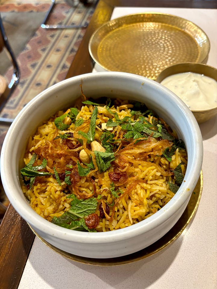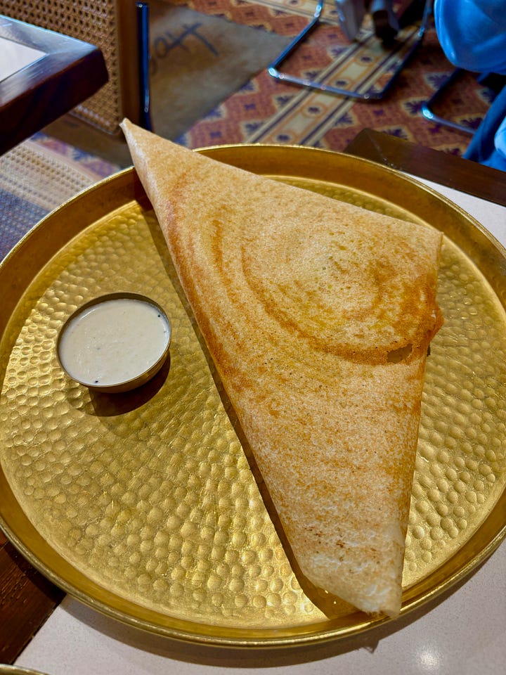 At Hoppers, they serve food “inspired by Sri Lanka and South India.” We had a masala dosa filled with potatoes served with coconut chutney alongside, and chicken buriani (their spelling) with raita. I’m no expert on the foods of those regions, but everything was really nicely spiced, and it was a good break from the meat and martinis we’d been indulging in.