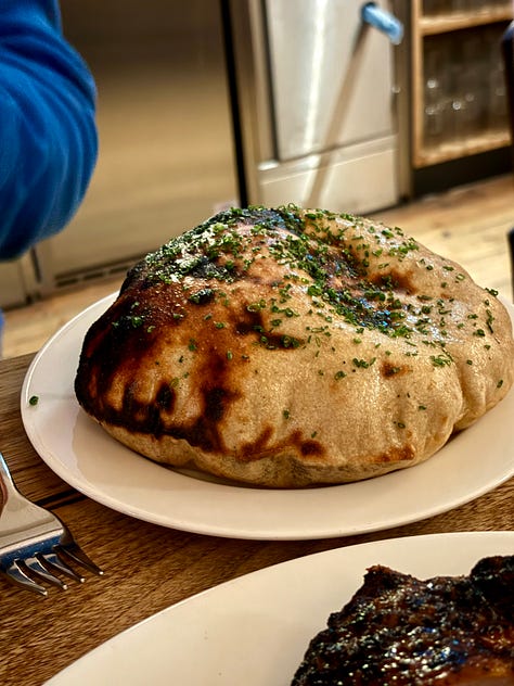 At Mountain, we had the best waitress. Unfortunately, I could only hear 7% of what she said as the place was loud. But there’s plenty to see in the huge kitchen that opens up to the dining room, with wood fires roaring everywhere while cooks turned meats, plated up vegetables, and arranged salads, which was a great showcase of what was on offer.