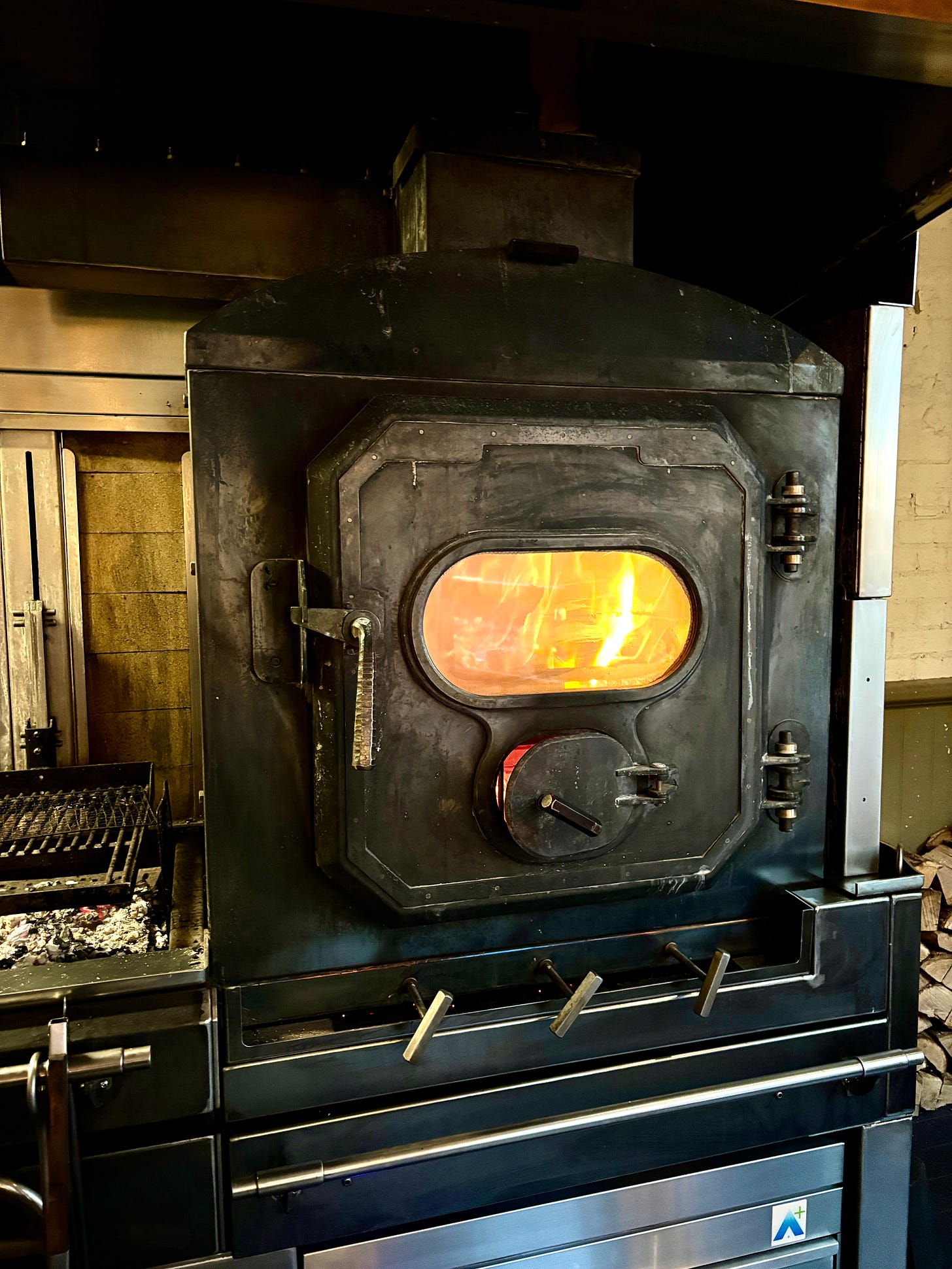 When I went over to check out the grill, the heat from the burning beechwood was so intense that I could only manage to get within 4-5 feet (1,5m) of it before I could feel the skin on my face starting to sizzle. When I asked the young man manning it how he did it, he said at first it was a challenge, but now he was used to it.