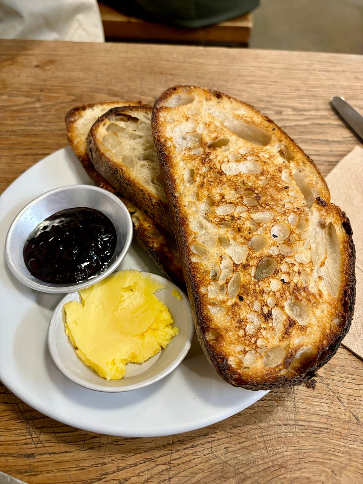 Also enjoyable was the sourdough toast with excellent British butter and homemade jam. It was well worth the trek, although I saw on their website that on weekends, the place gets very busy (so you can put in a take-away order in advance online), so best to go during the week if you want to sit and enjoy your treats there, if you can.