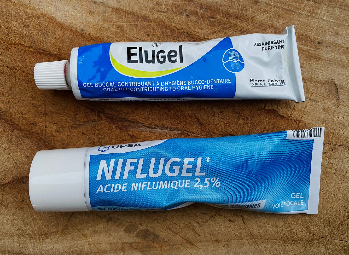Life between two cultures can pose some real risks. The other day, I almost put toothpaste (top) on my foot instead of analgesic cream (bottom). They’re both blue and white tubes, they both have U, L, and E in the names, and they both end in gel. Fortunately, I didn’t get that backward and put the anti-inflammatory cream on my teeth, but I do remember when I first met my French partner, Romain, he remarked on my big, white teeth, which is a cultural difference.