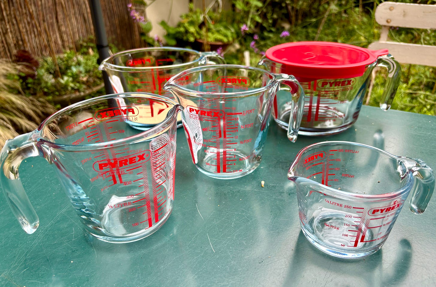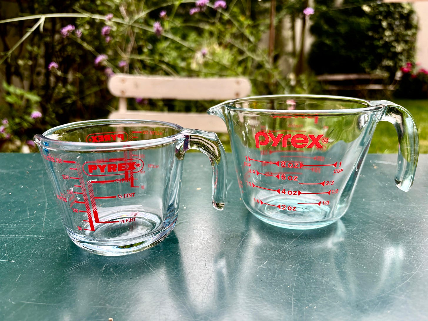But I started missing the visceral feel of glass, and it was a joy to unpack my new pyrex measuring cup when I got home from the States.
