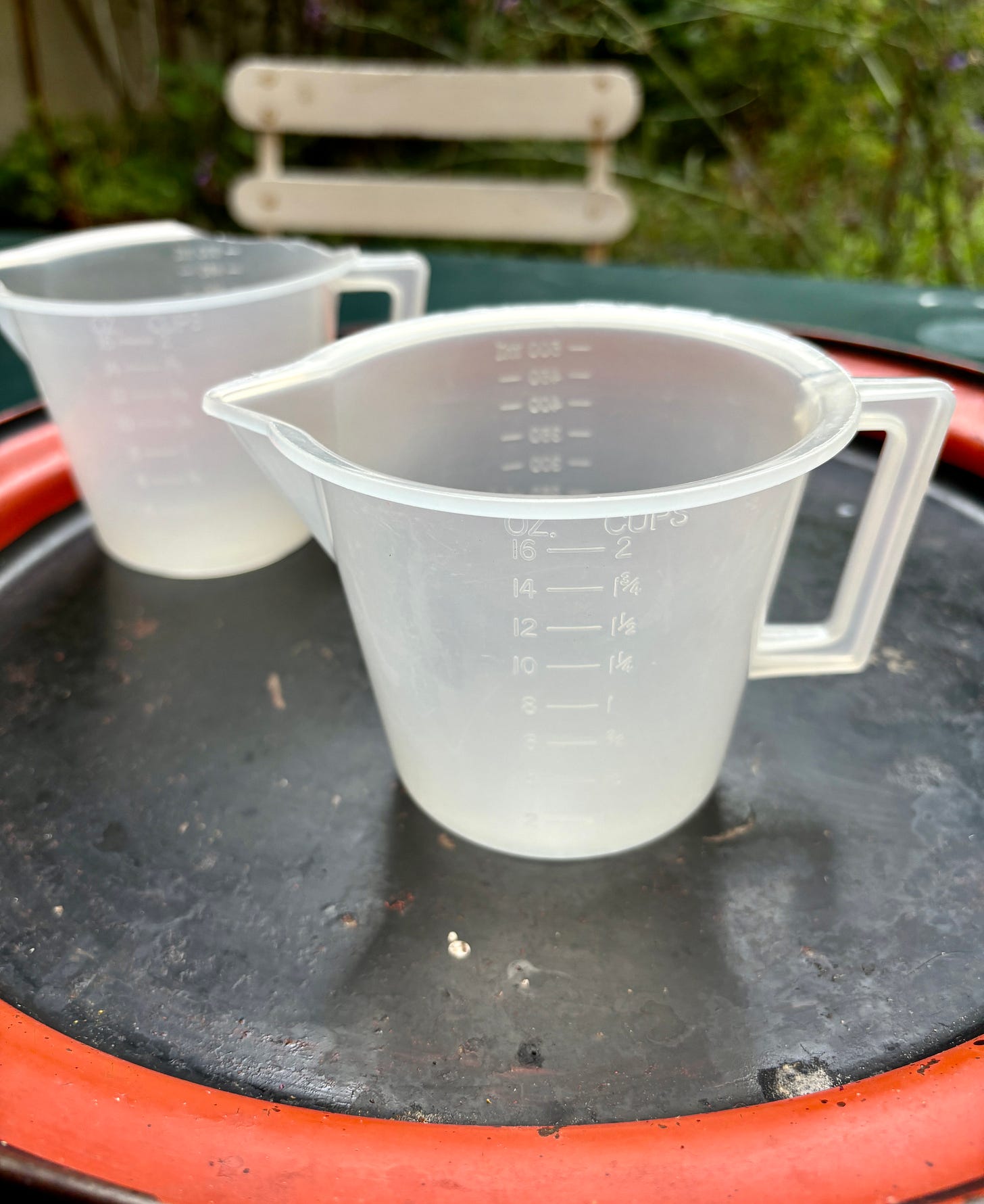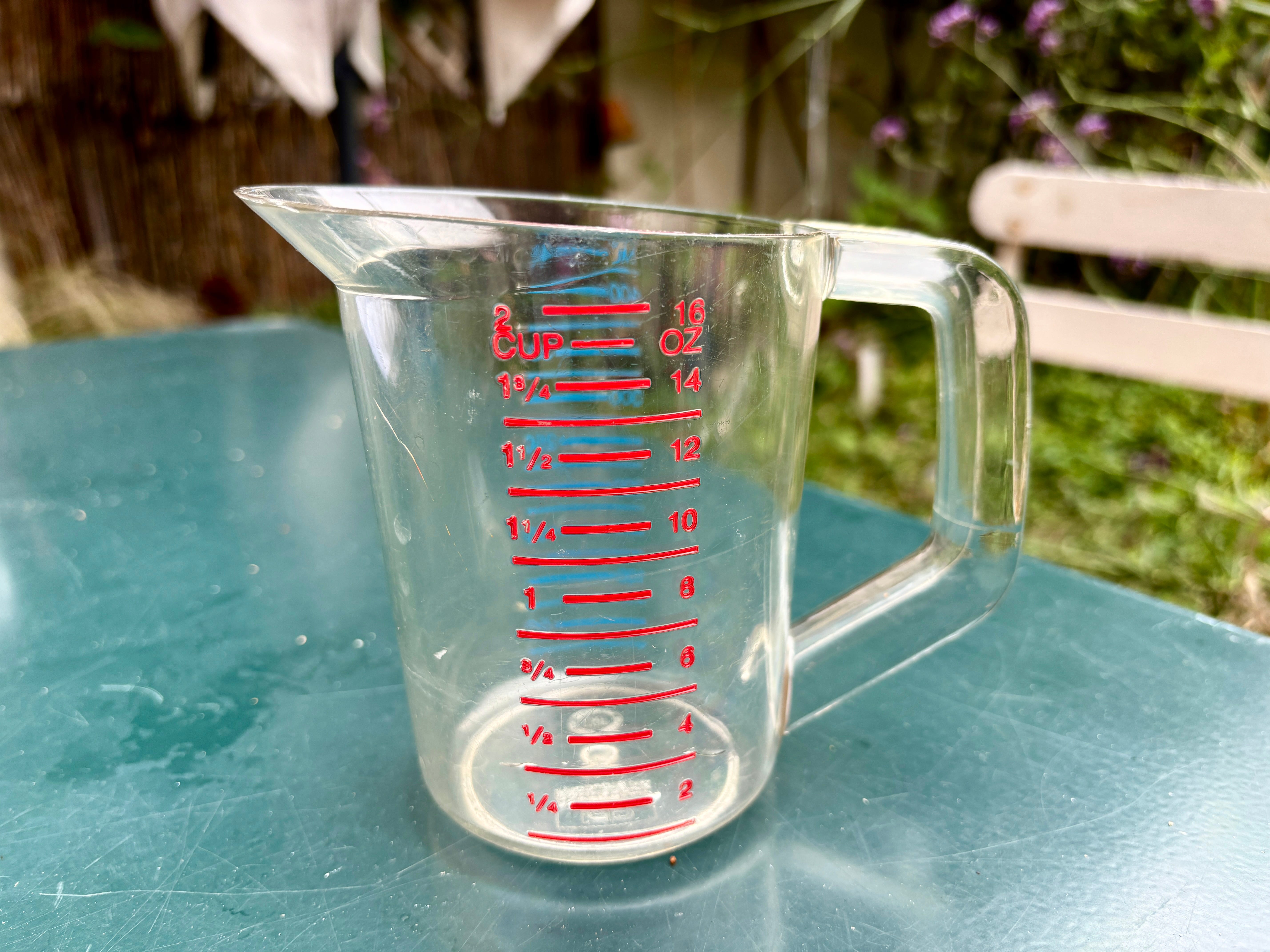 So when I was in the U.S. a few months ago, I replaced my faded measuring cup with a new one, a sparkling clean Pyrex measuring cup.