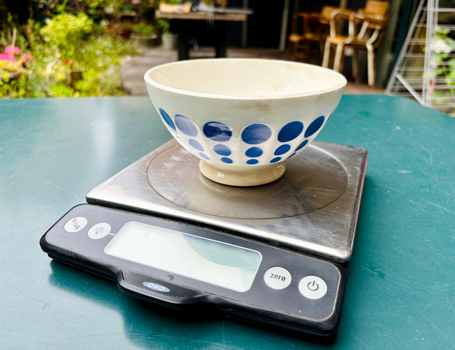 Although I’m used to it, I have to say that I’m not ready to give up my measuring cups. (Unless, of course, the U.S. goes metric. Then we’ll talk.) But baking with cups and tablespoons is more viscerally fun. With a scale, you switch on a machine, place a bowl on it, spoon flour into it, and wait for the right numbers to show up on the screen. Then you zero it out and do it again with the next ingredient. While one could argue that it’s more efficient, and uses fewer dishes, if you’ve ever been weighing out ingredients like that and suddenly your scale turns off, it’s a moment of panic for a baker, prompting me to have a psychotic disorder, which could also use a name.