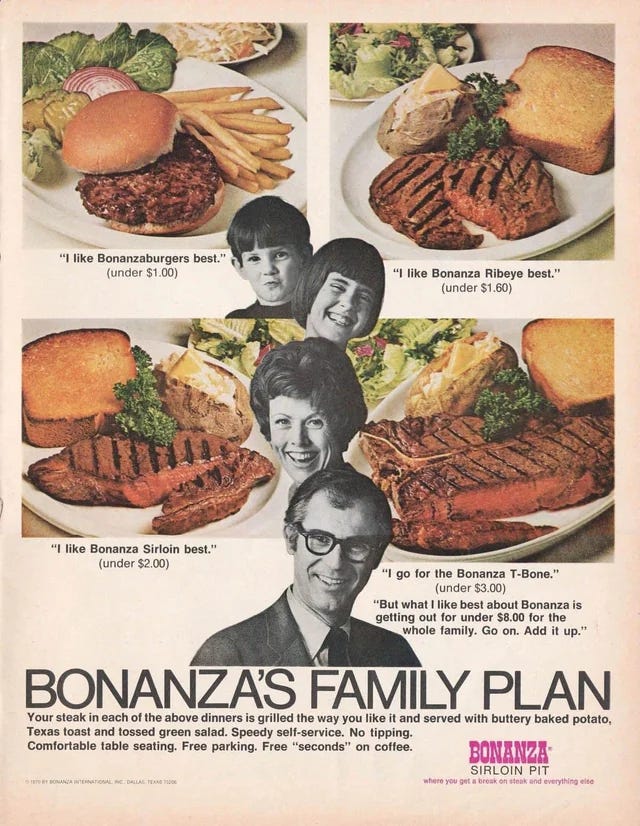 The other day, a French neighbor asked me how I started working in restaurants. I don’t know if teenagers in Paris work after school or on weekends as a dishwasher, especially at places like Bonanza Sirloin Pit, as I did when I was sixteen. Buffalo Grill, a French chain, is the closest to the Western-themed Bonanza, but I doubt they have Texas toast: extra-thick white bread drenched in butter then griddled until crisp and toasted on both sides and served warm alongside ribeye steaks, as well as pricier T-Bones.