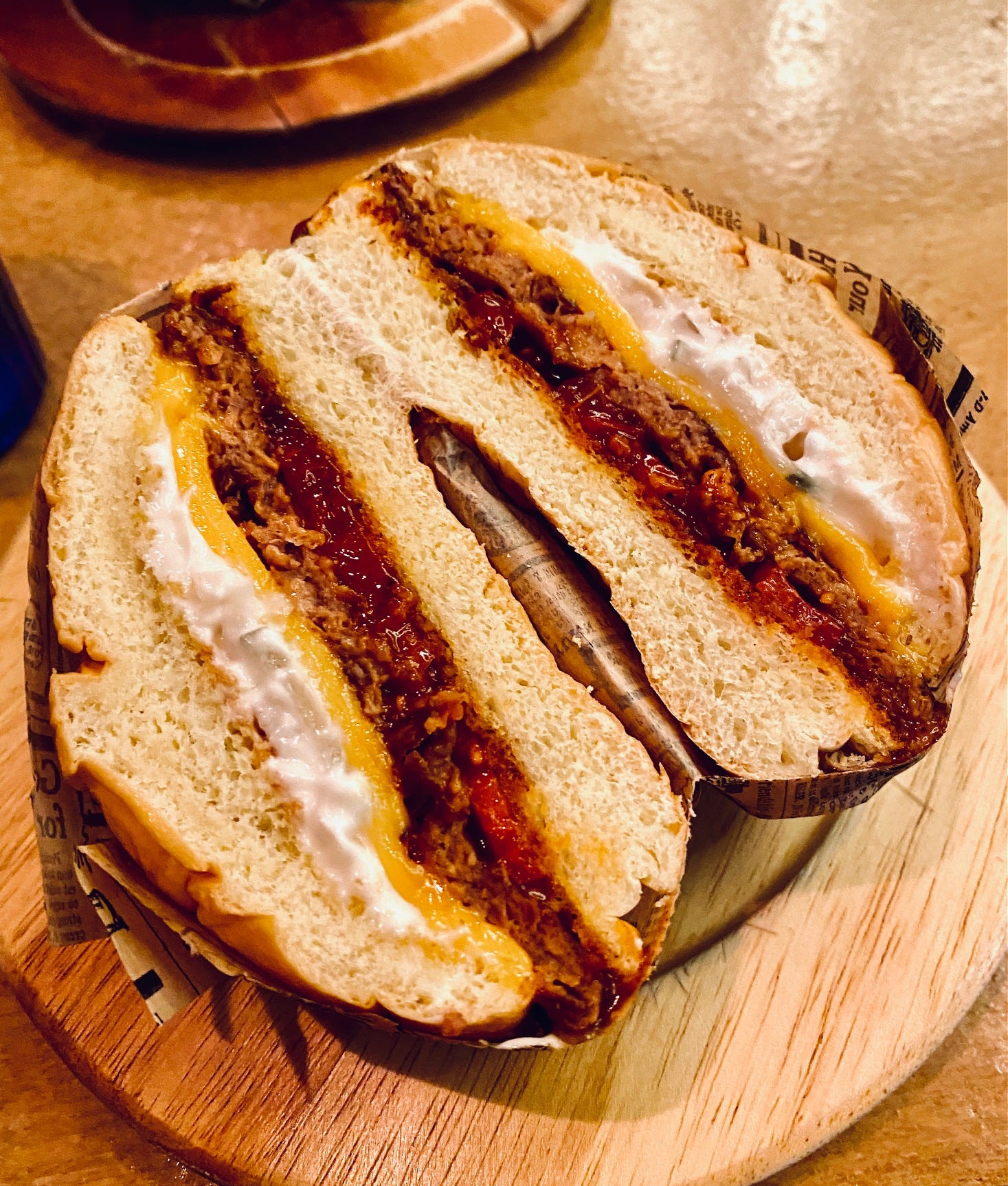 I was heading to the theater with my friend Heather, who leans vegan, and she suggested we stop in Les Tontons for dinner before the show. The place is small and arriving before I did, she got the last two seats. I ordered the Smashburger (above) and an order of panisses, chickpea “fries,” which I was excited about when I saw them on the menu, but the server told me — malheureusement — that they were out of them. So we went with regular French fries because the ones on the nearby tables looked good, which they were.