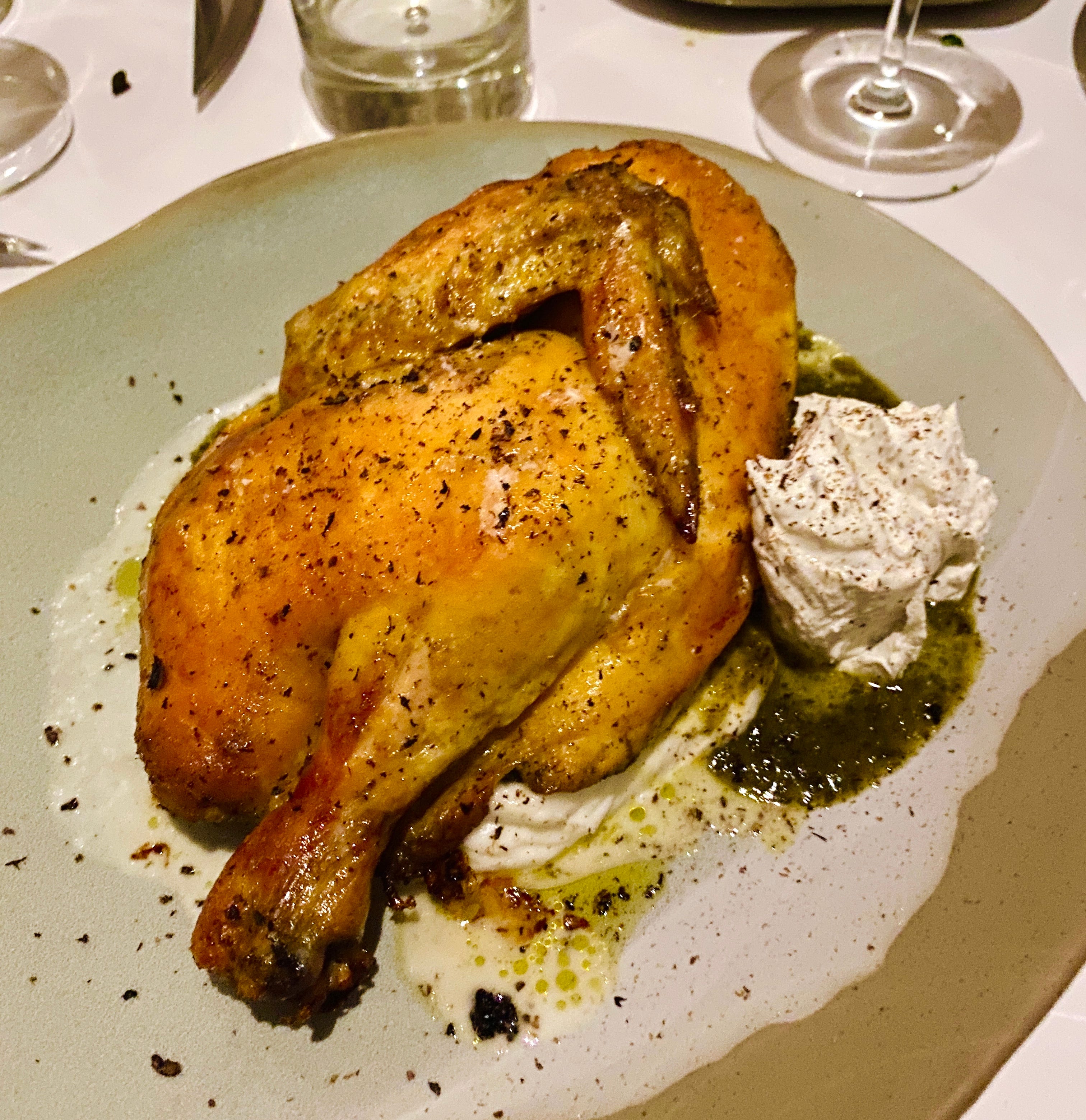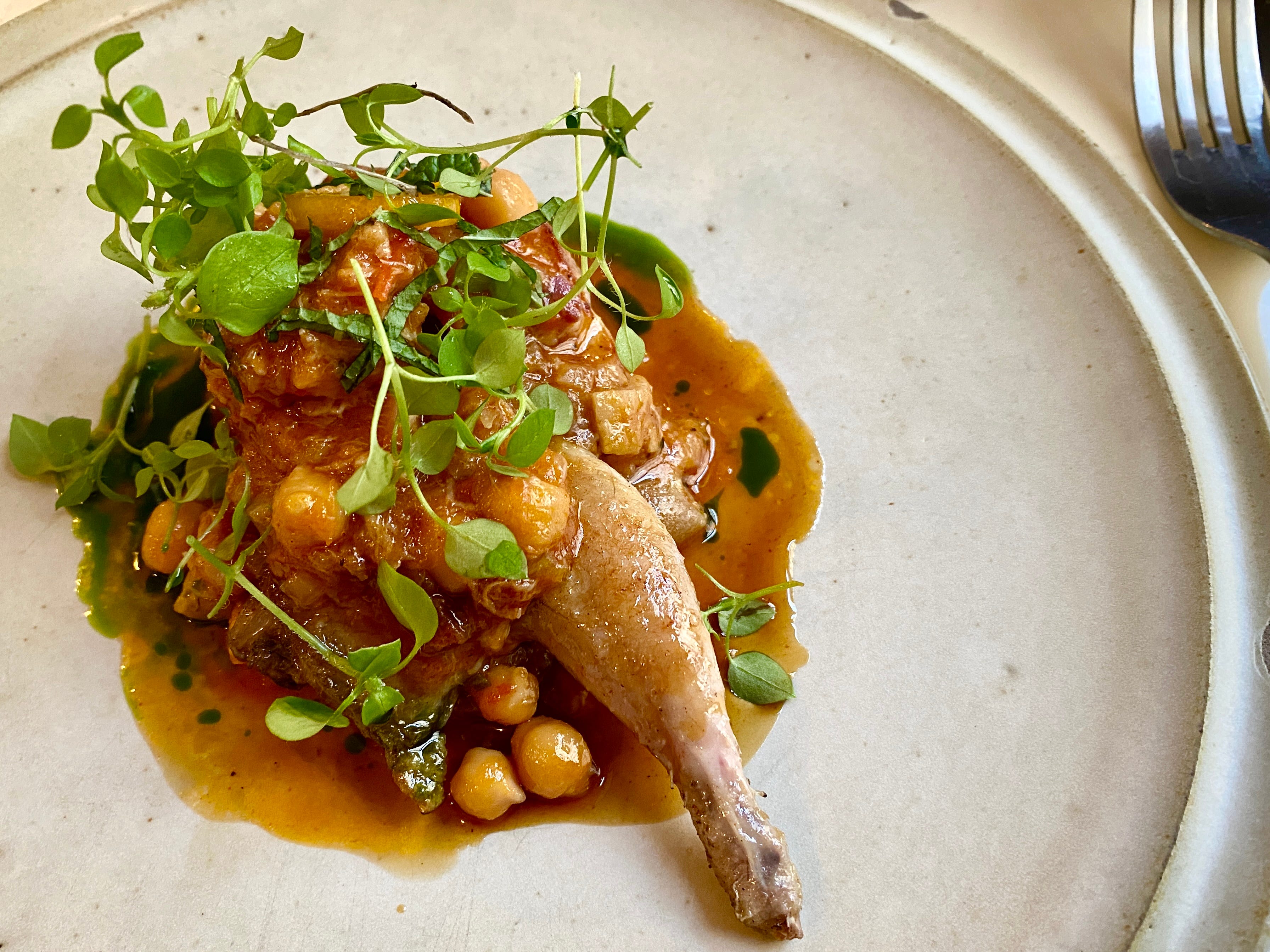 I had a lovely salad of radicchio, beets, and burrata with herb oil, and for my main went with the grilled quail (above) with chickpeas, mint, and kumquats.