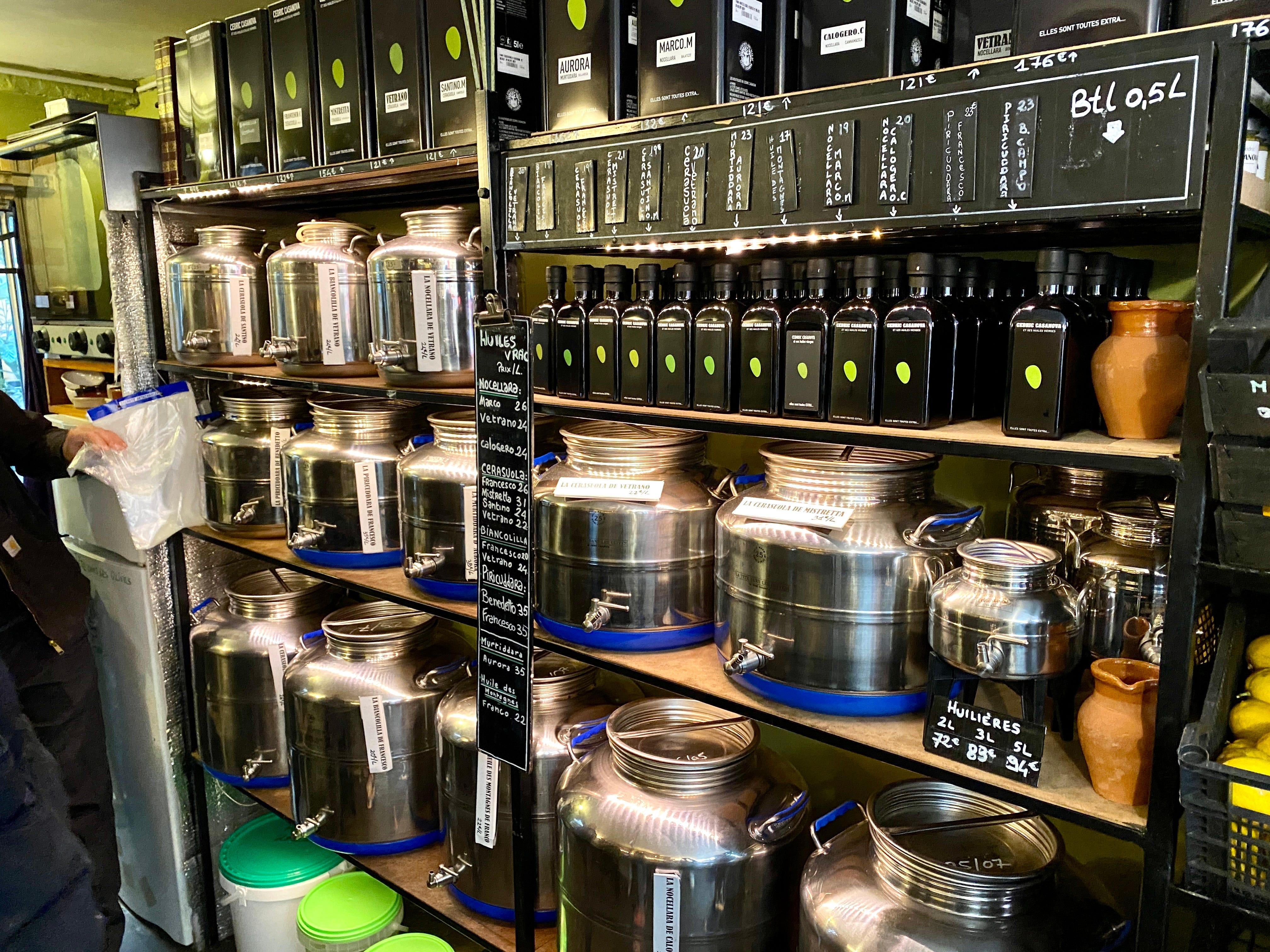 I was running low on Sicilian capers, so I biked over to this tiny, and very charming, little shop that sells specialty items from Sicily, including fresh citrus, anchovies, Italian cheeses, capers, and most notably, olive oil. When I arrived, the owner was offering tastes to some people who’d stopped by to pick up a few items too, and I ended up tasting six different olive oils, which were all wonderful. (One reason not to be in a hurry in Paris!) Note: You’re welcome to bring your own containers and bottles.