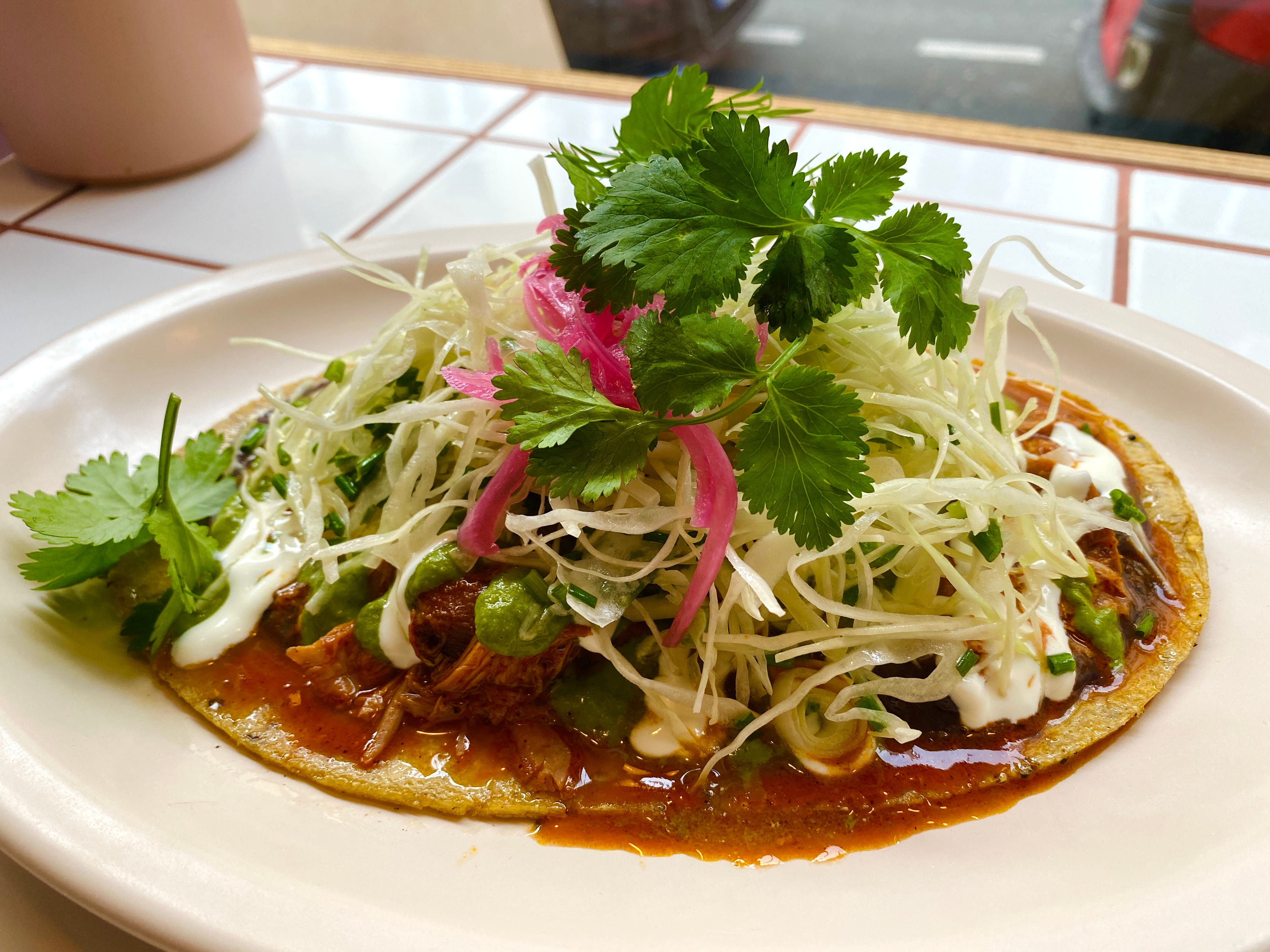 I also loved the Yucatán-style chicken (above) on a fresh corn tortilla with cabbage, salsa, and crispy pickles. Taco kits are available for take-out and deliveries on Thursdays, and Carlos is doing occasional pop-up dinners in the evenings. [Comer/Paris.Mexico website and Instagram.]