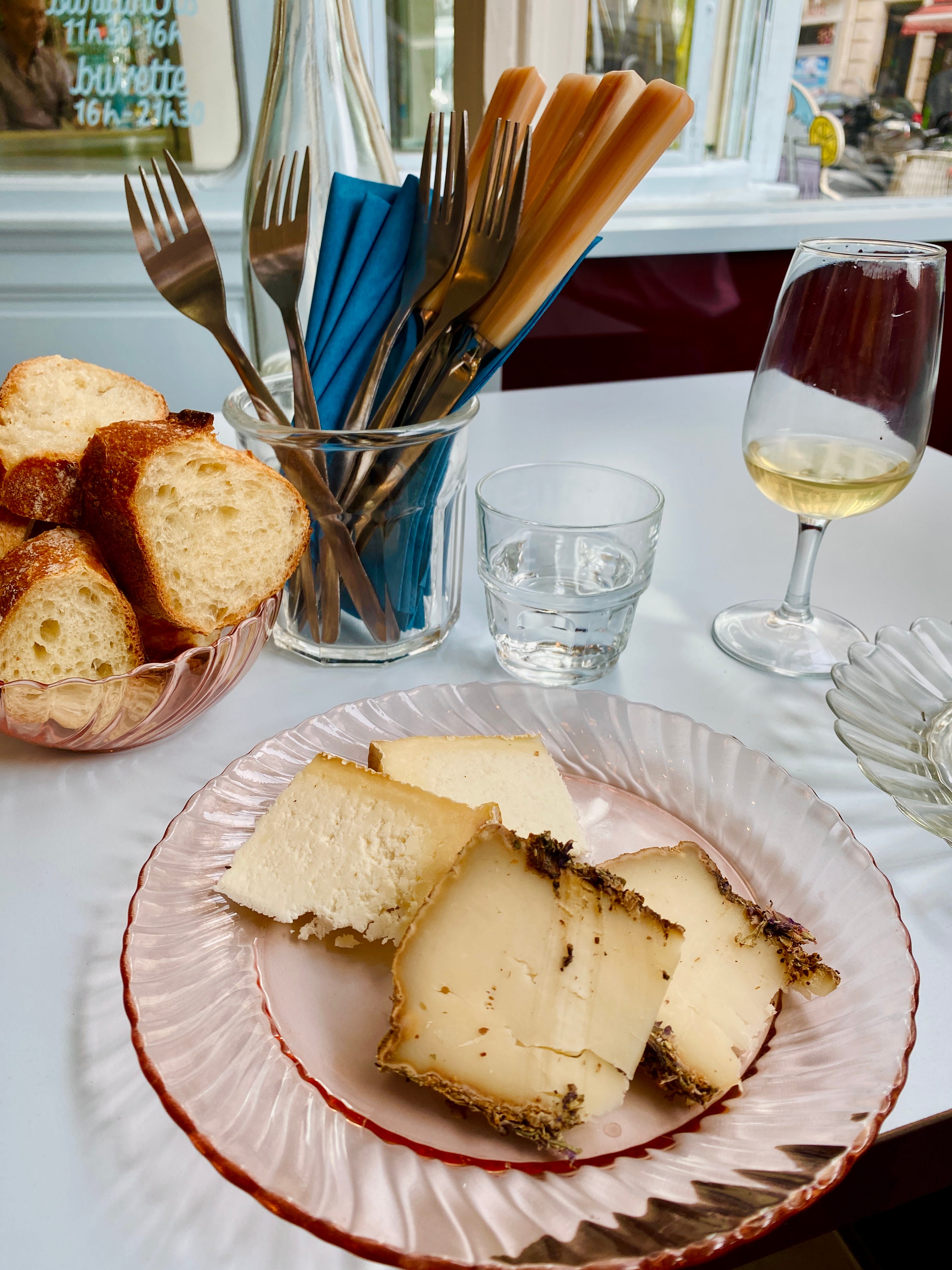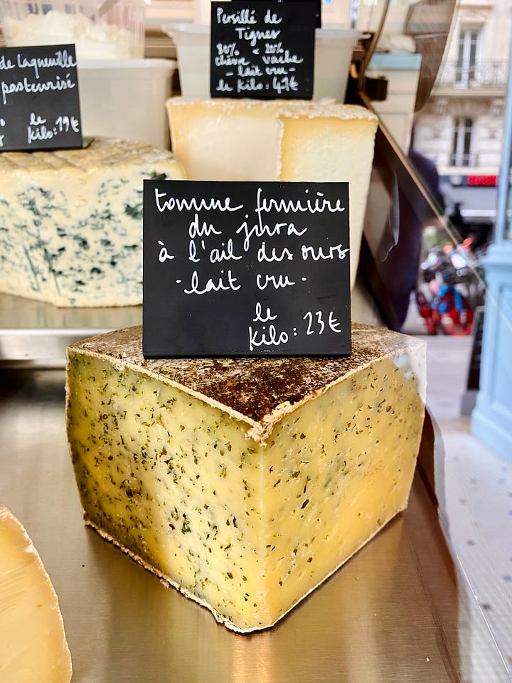 What really wowed me here were the cheeses, many of which I’d never seen before in Paris. If there’s a better pairing than cheese and wine, I haven’t come across it.