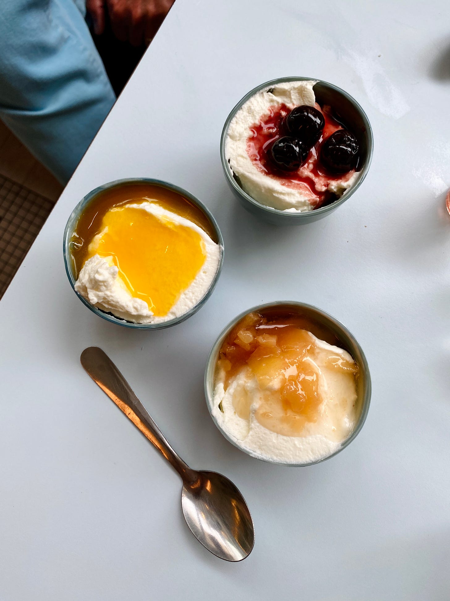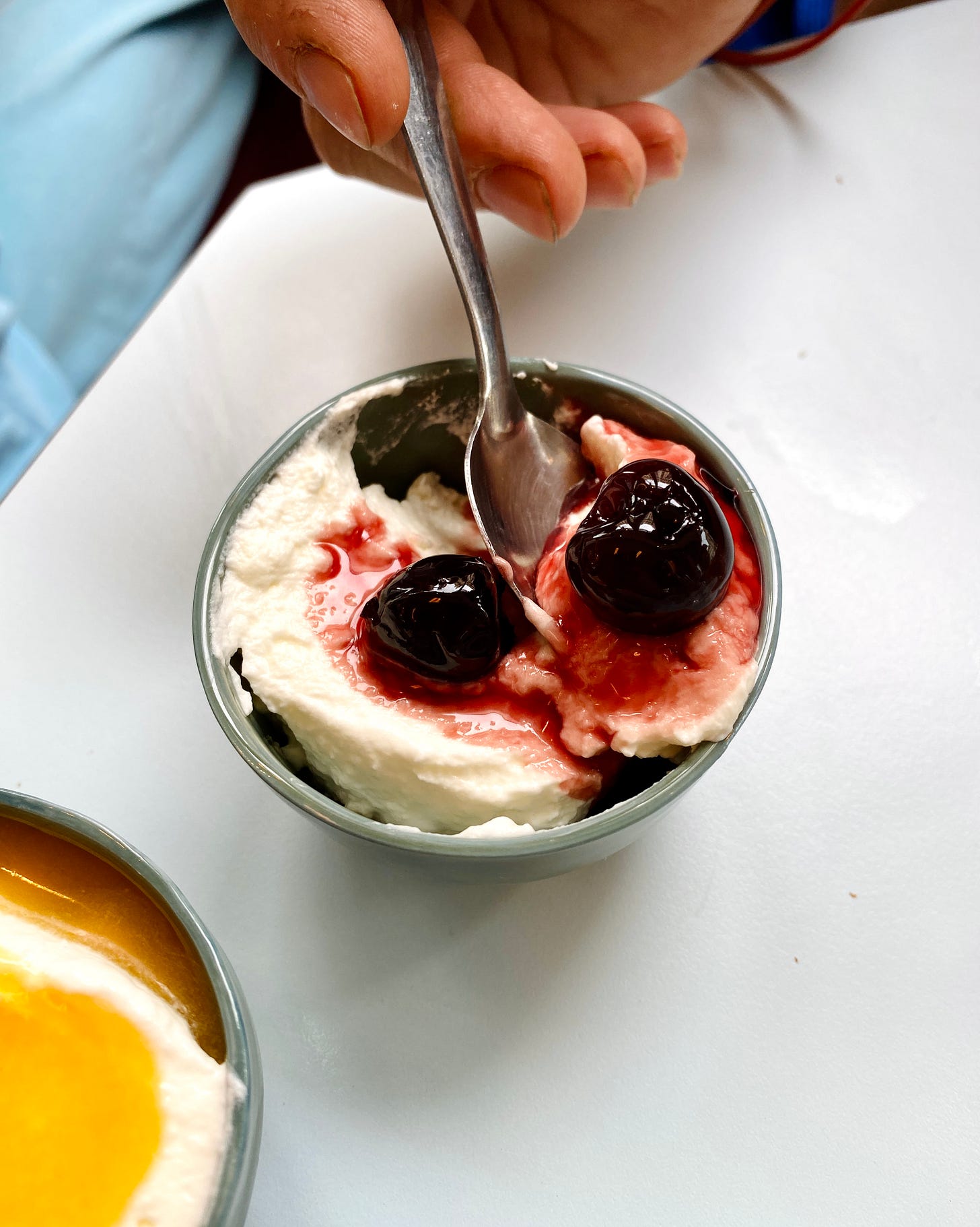 But when it comes to an actual dessert, Camille offers up fontainebleau, a whipped blend of fromage frais and whipped crème fraîche that is literally heaven on a spoon. Candied Amarena cherries come back here, in addition to Sicilian orange jam and apple compote.