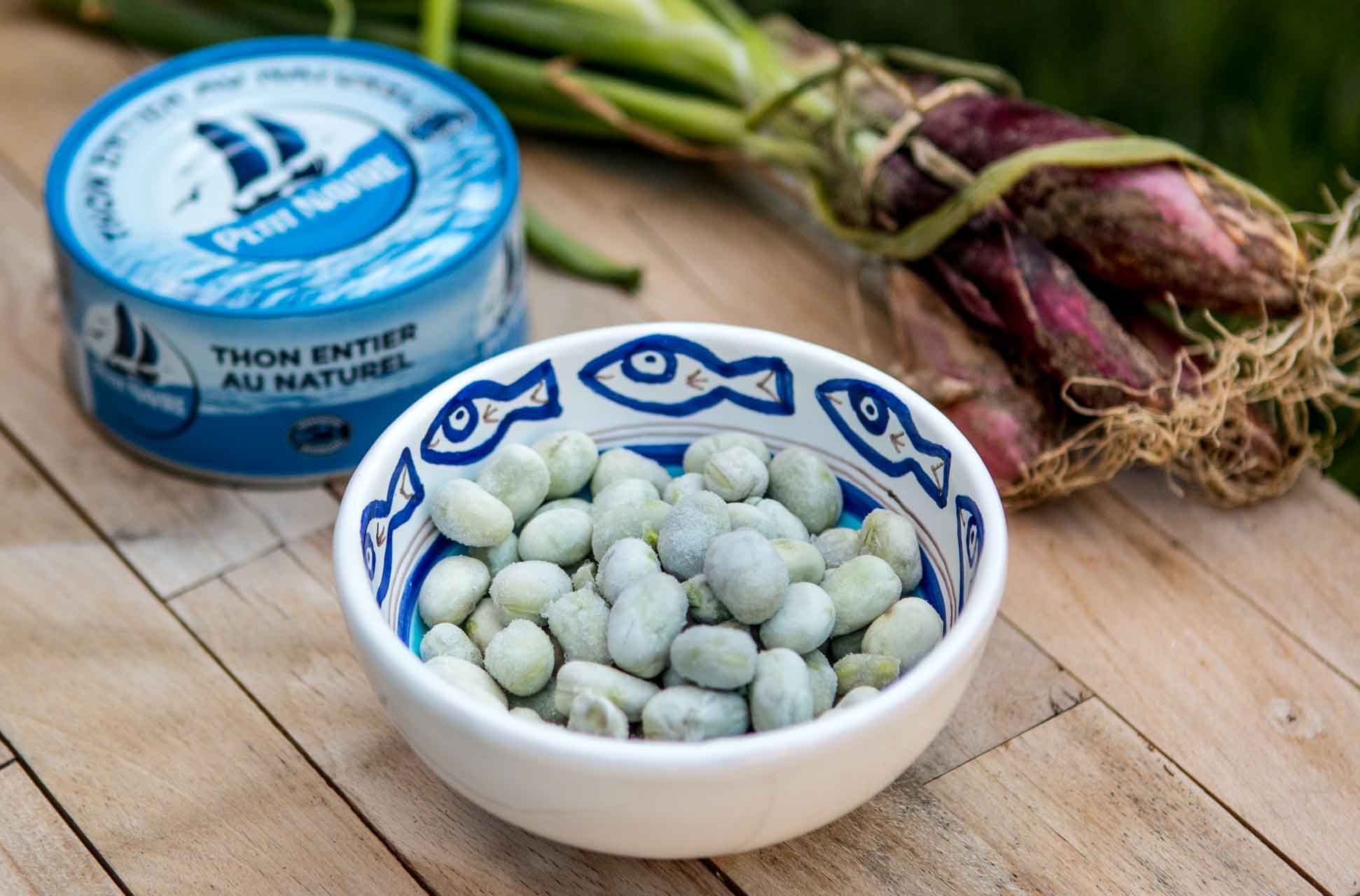 Fortunately, most of the ingredients to make Pan Bagnat are easy (and inexpensive) to get in the summer, namely tomatoes, onions, cucumbers, radishes, and eggs, as well as canned tuna and anchovies. Fava beans might prove difficult to find, and I’ll admit to taking a detour into treacherous territory and using frozen ones.