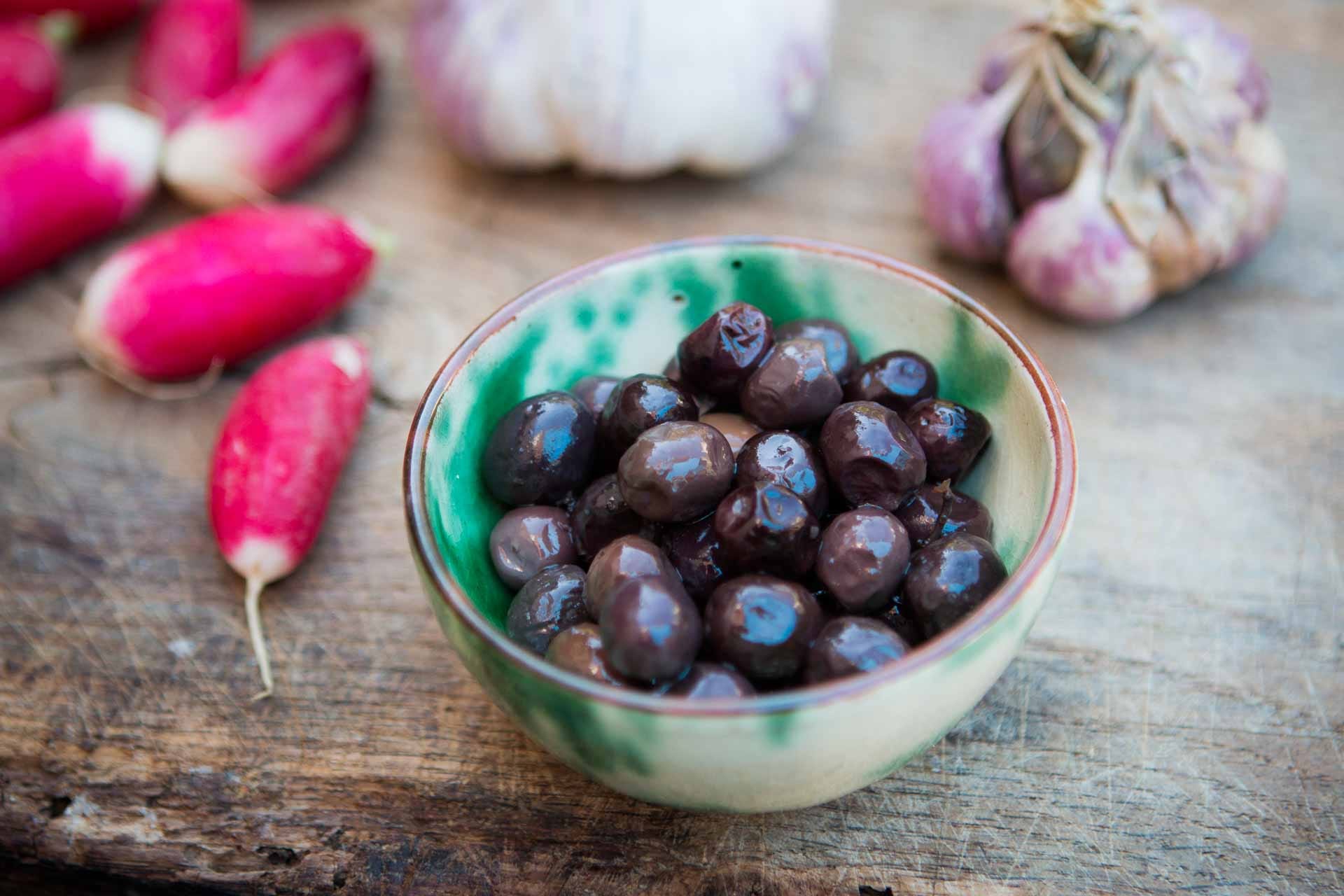 25 Niçoise olives, pitted, or 12–14 larger oil-cured olives, very coarsely chopped